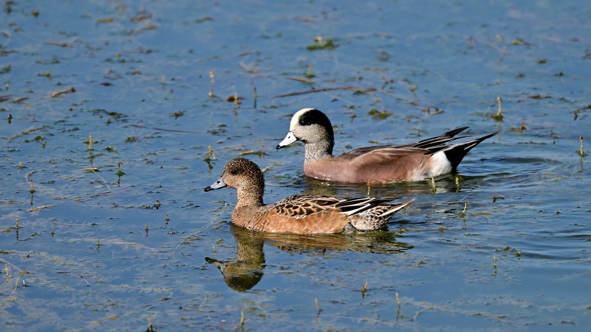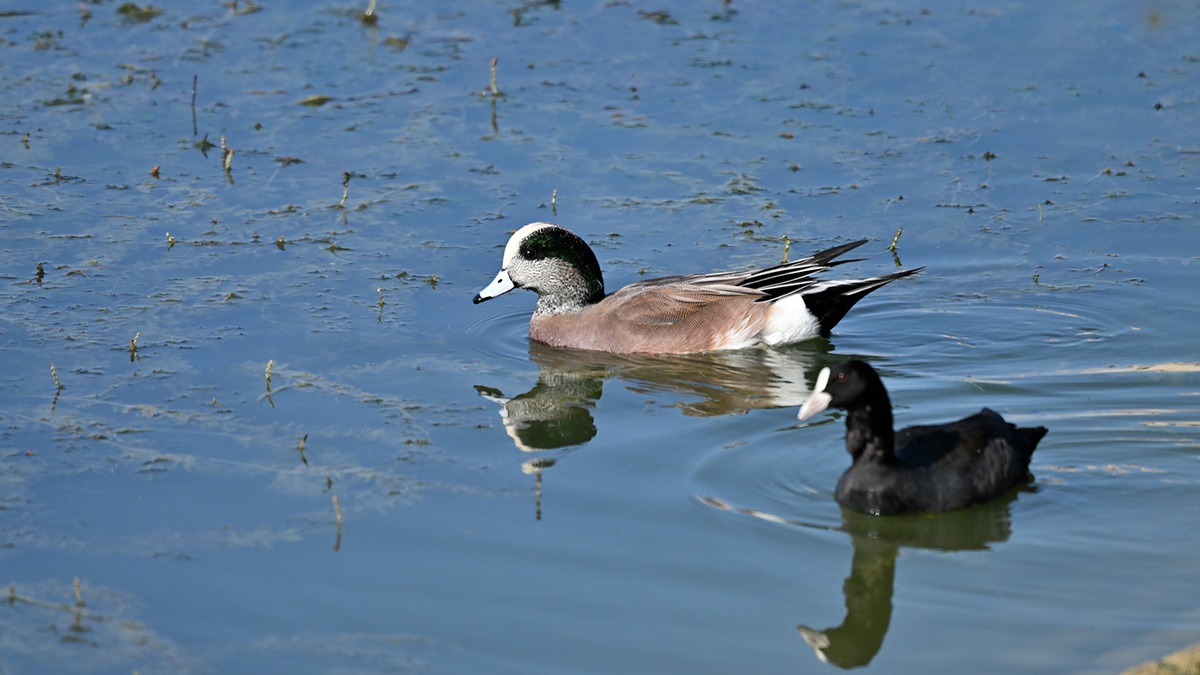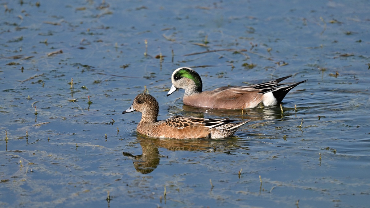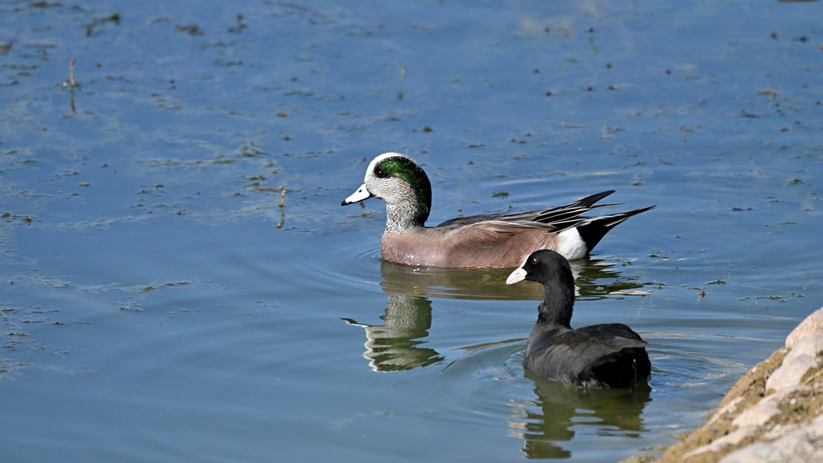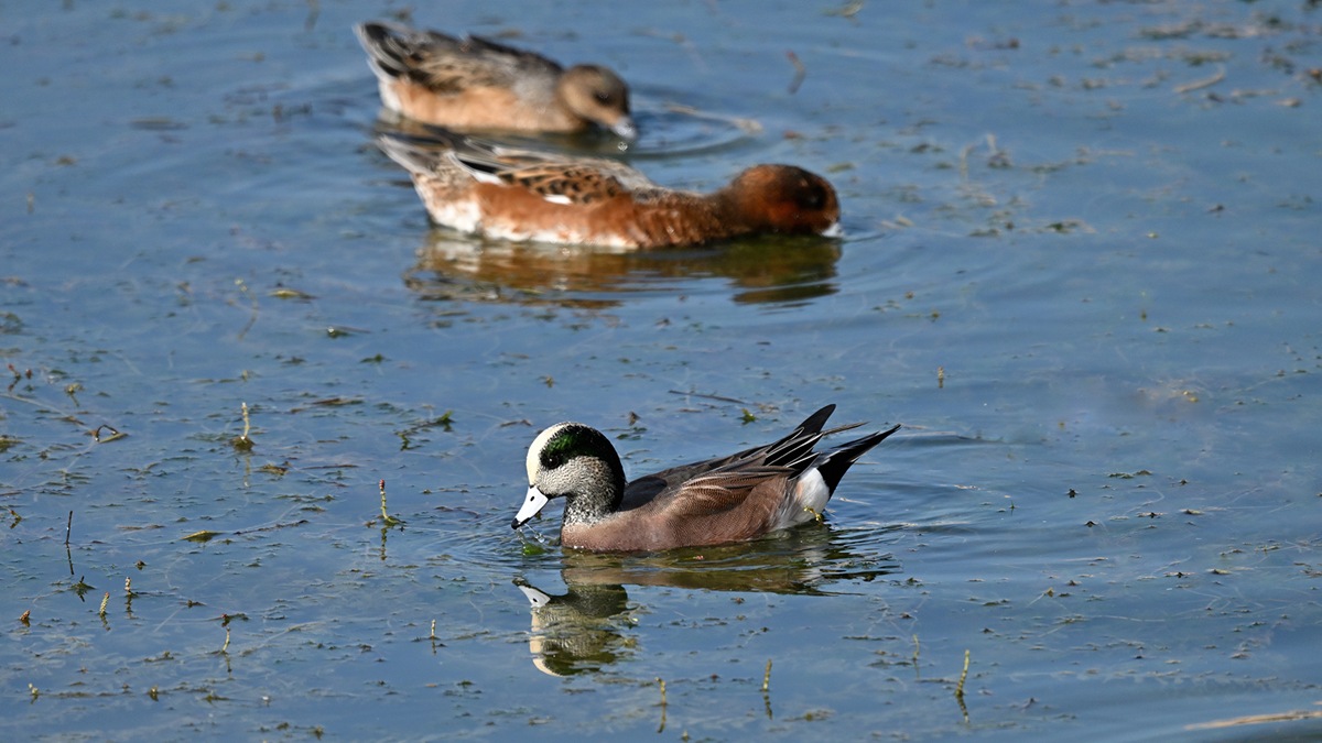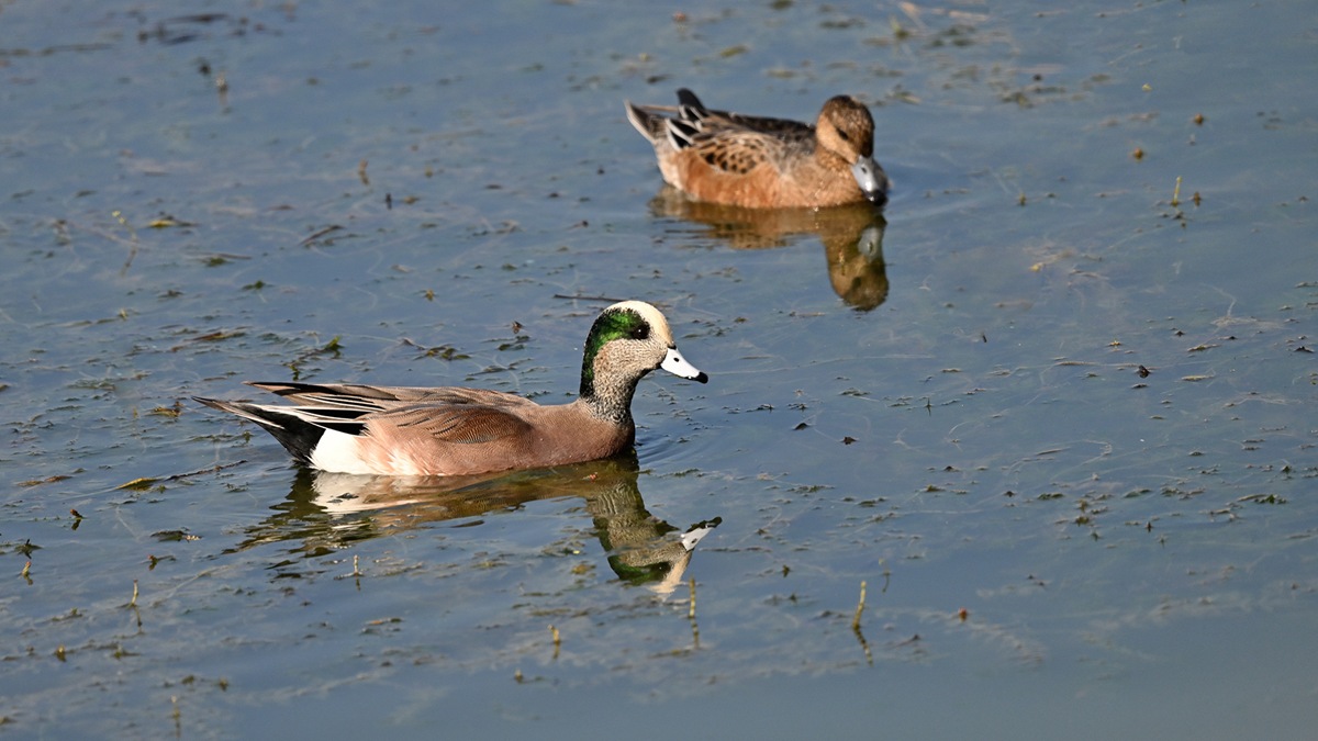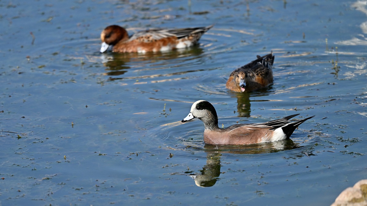 毎年公園の池にアメリカヒドリガモの交雑種は飛来するので撮影してるのですが純血種は久しぶりだと思います。