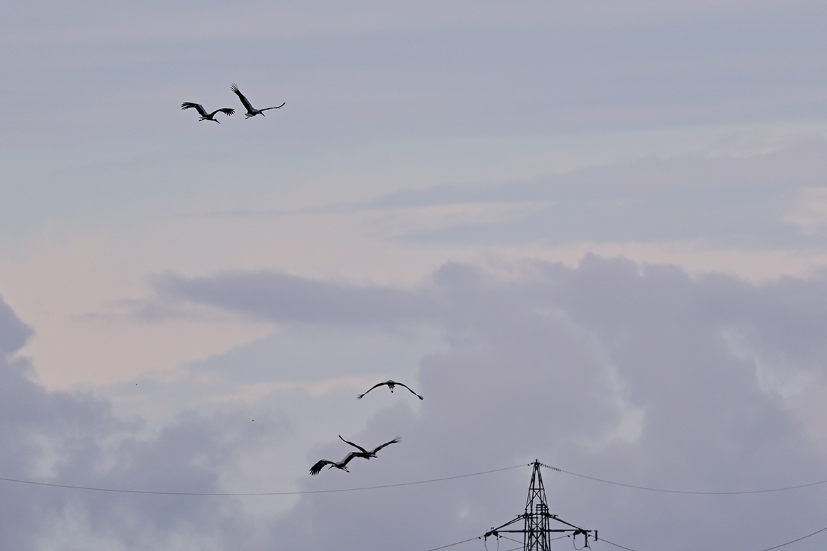 コウノトリはその後、二つのグループに分かれてそれぞれ別方向に飛んで行きました。9時半には最後の群れが飛び去って静かな大池に戻った感じです。