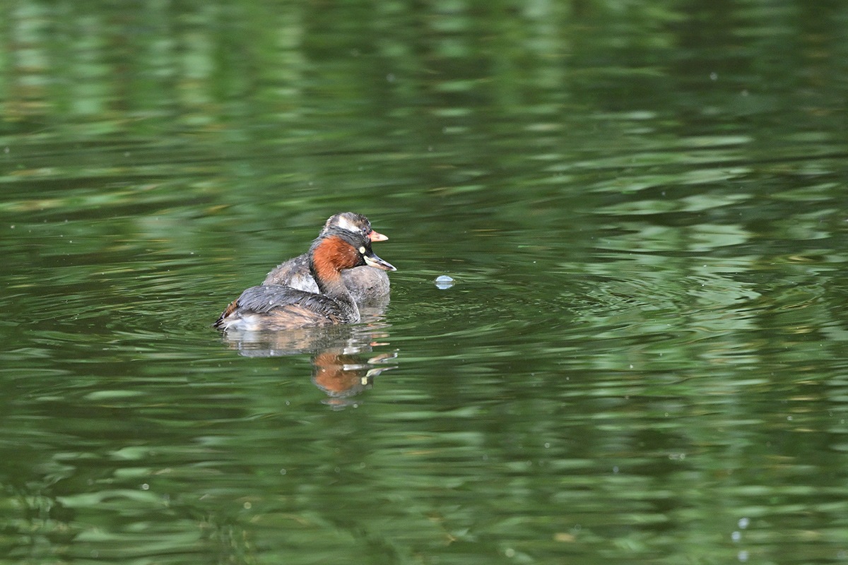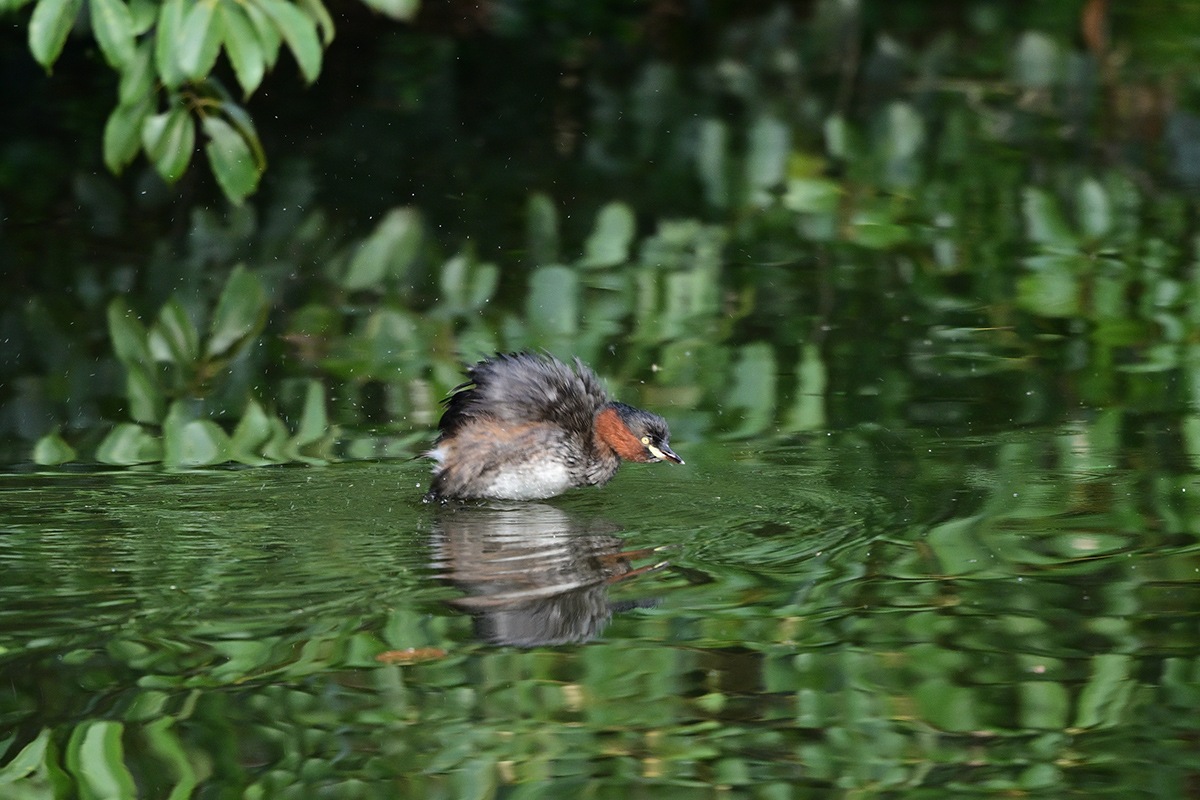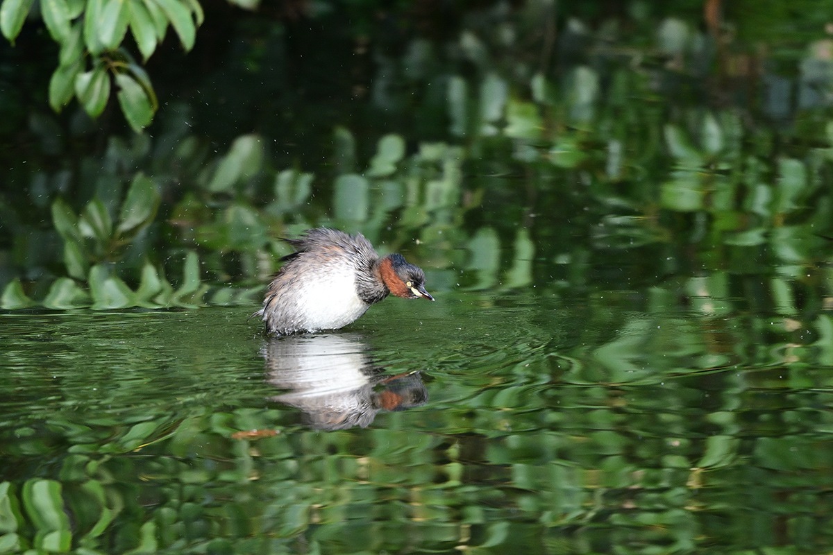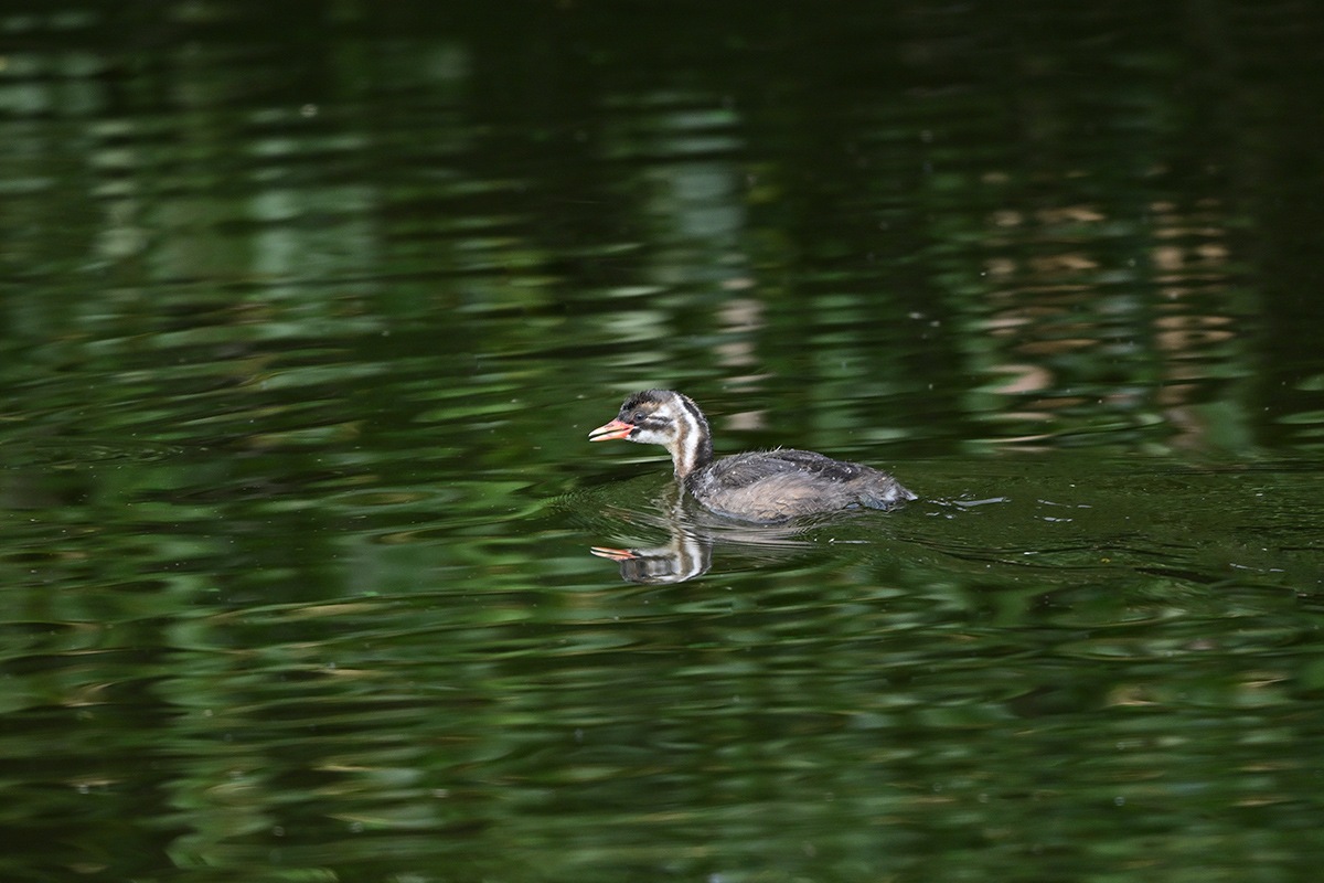 既に大きくなった3羽の幼鳥と親鳥の5羽でのんびり暮らしてるカイツブリ家族。他のカイツブリは見当たらなくてこの小池にはこの家族だけの様です。