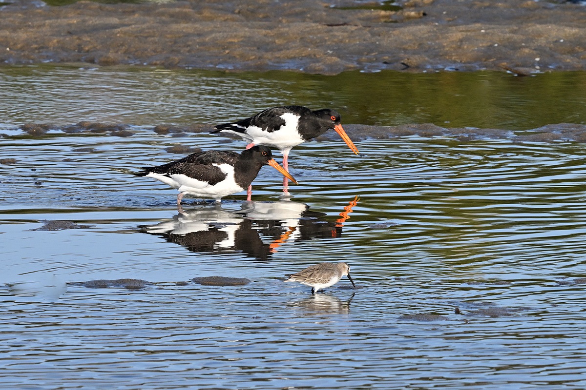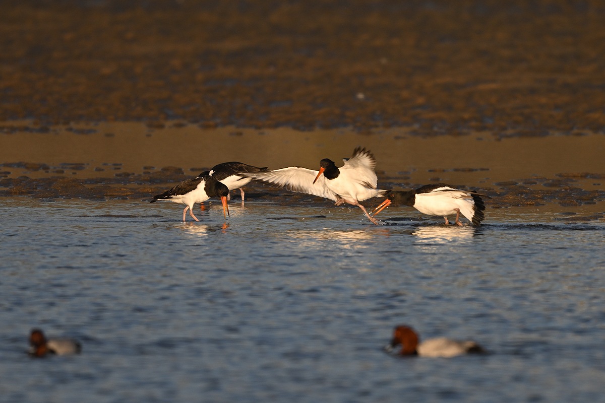 当日現地へ到着すると丁度陽が上がり始めた頃でミヤコドリ達は各々の場所でお食事中。