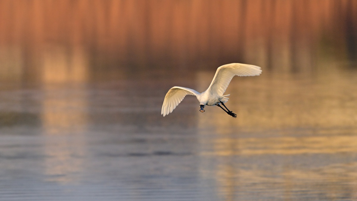 今期ヘラサギが飛来してから朝日に輝くヘラサギの飛翔を狙って居たのですが漸く撮れました。