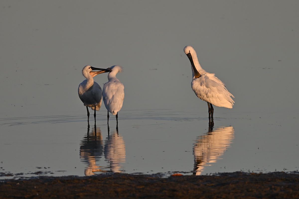 早朝のヘラサギ達
