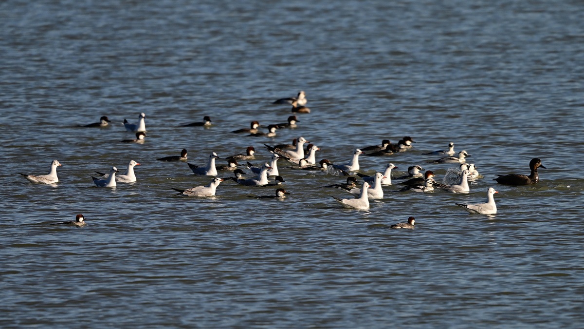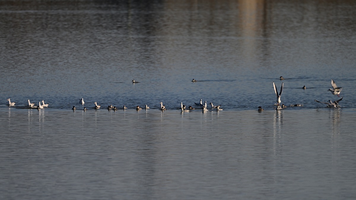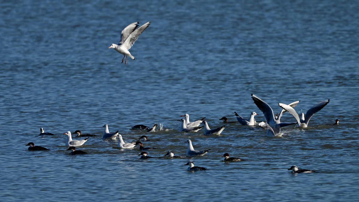 ミコアイサとユリカモメが小魚の群れを追いかけて狩りで協力してる様子を動画に纏めました。