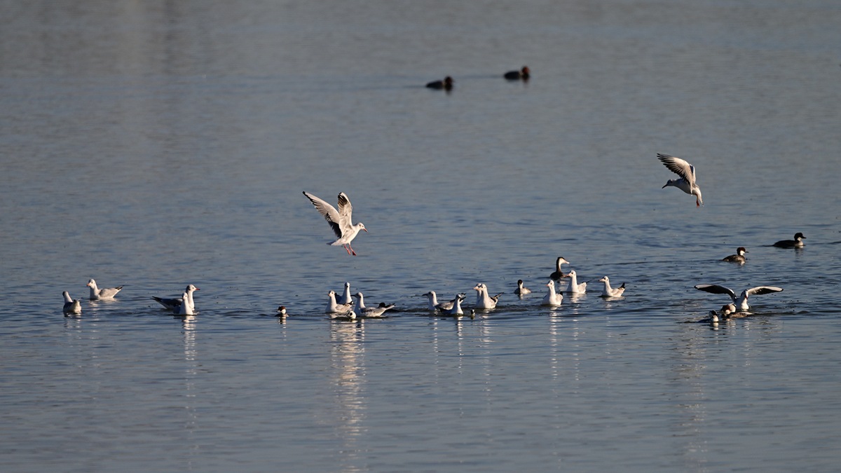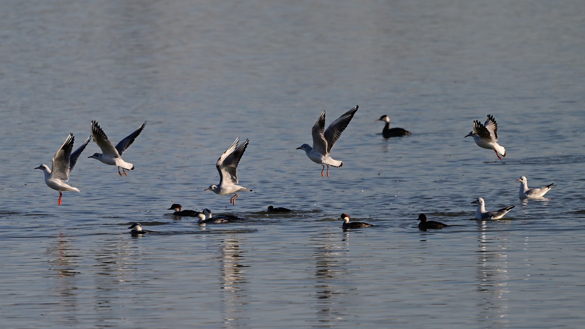 ユリカモメが上空から小魚の群れを探し出すと仲間をその群れに集めます、ミコアイサが潜って子魚を浮き上がらせるとユリカモメが捕食する構図の様ですね。