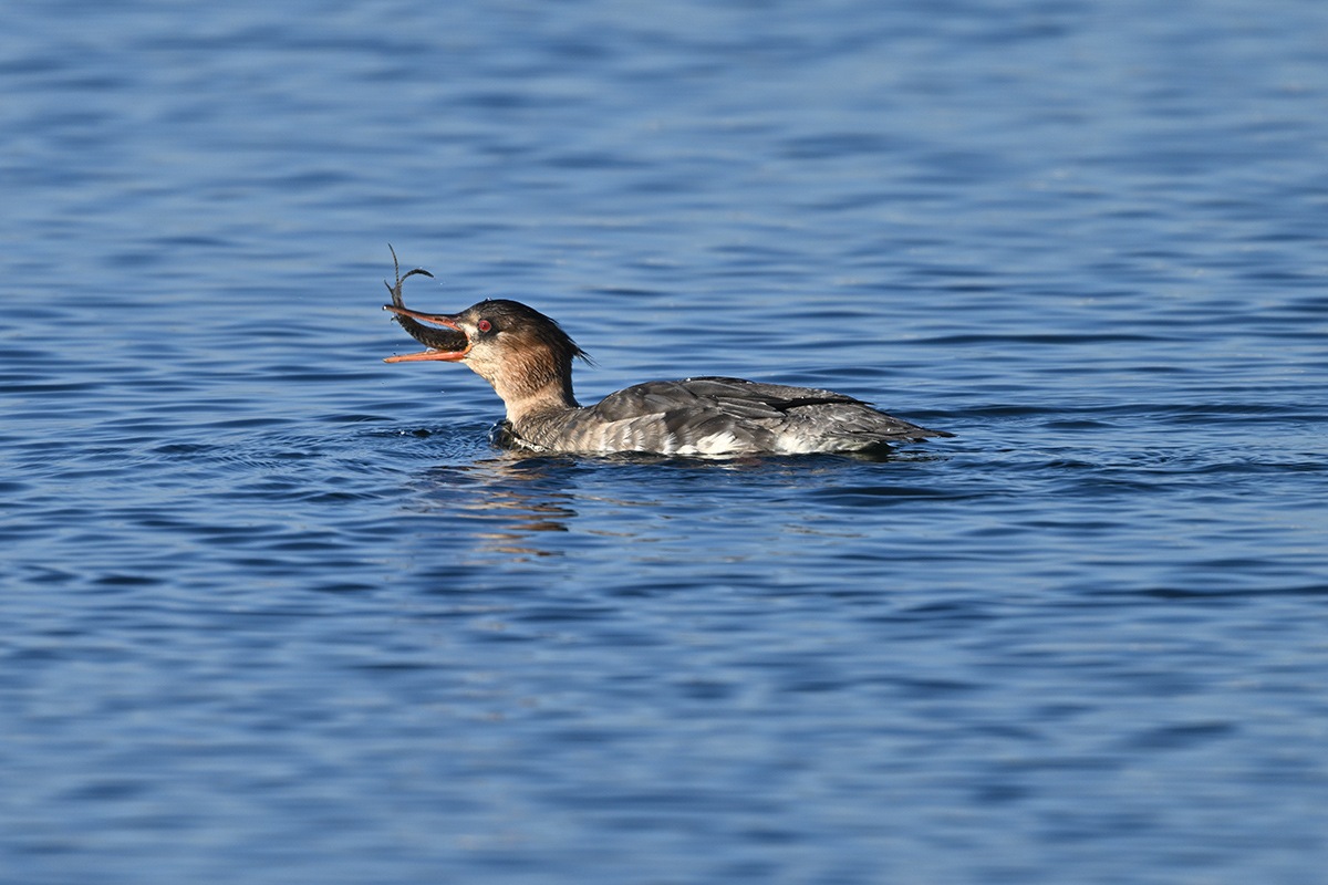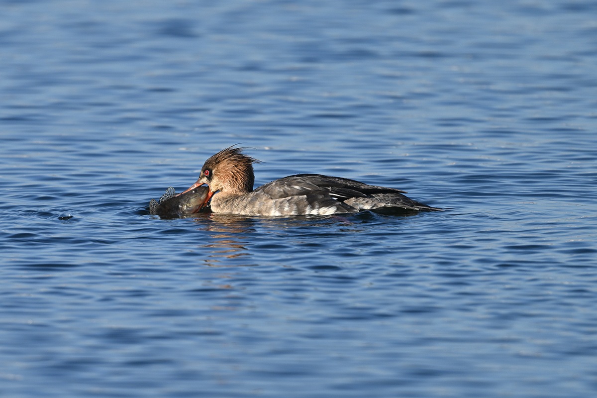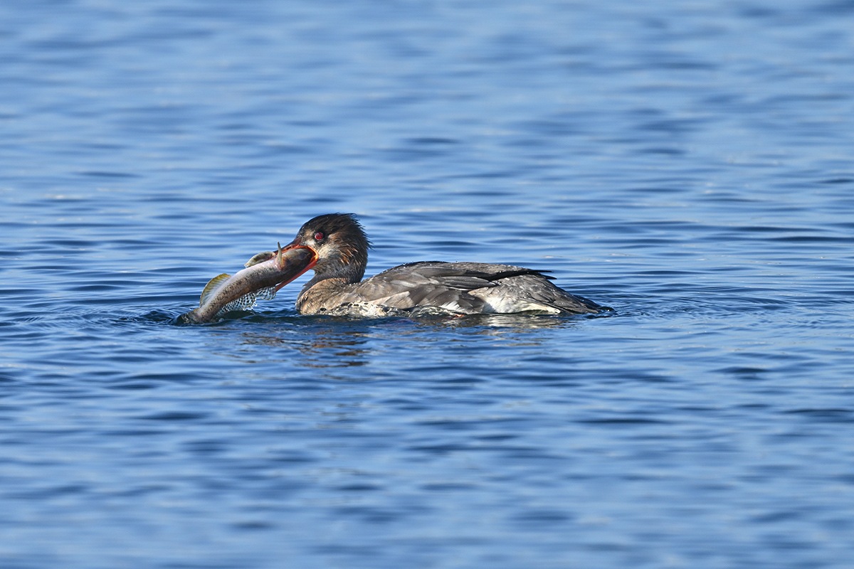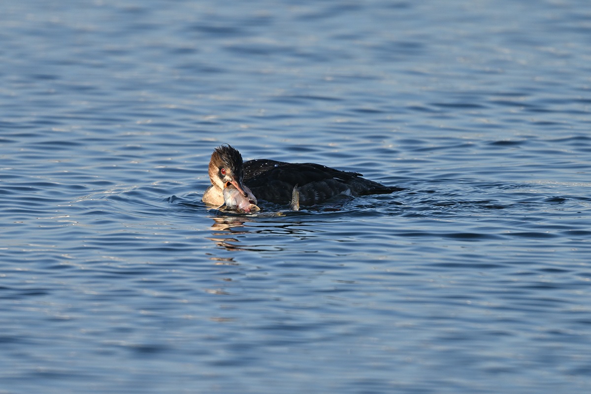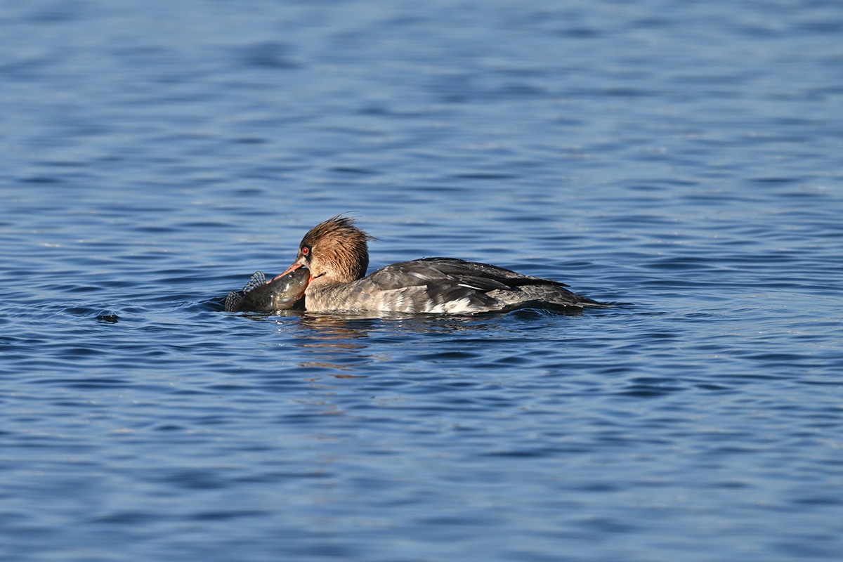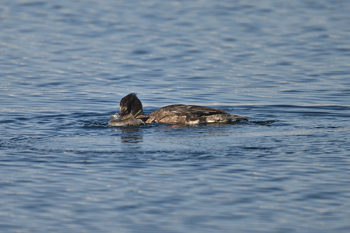 ウミアイサにとって大きな獲物ですので飲み込むのに時間かかってましたが見事飲み込みました。