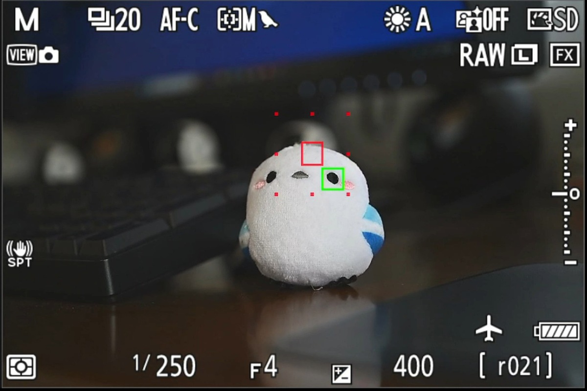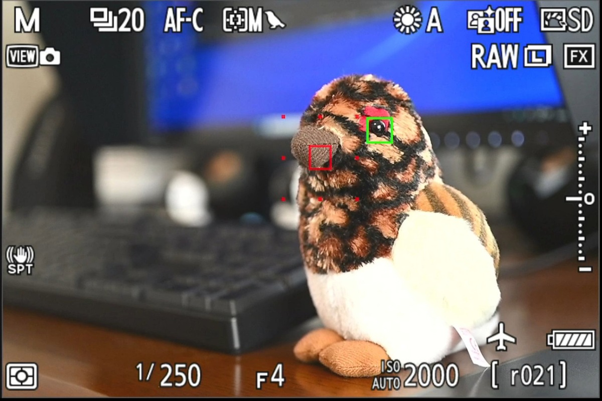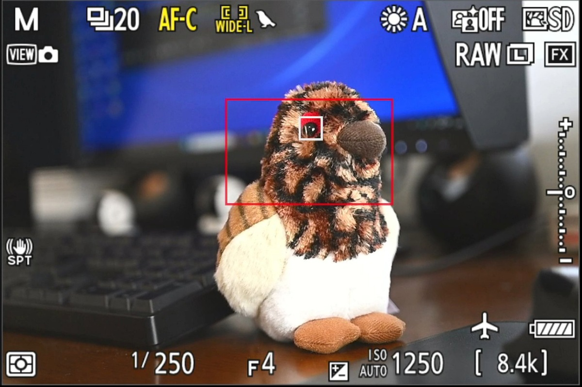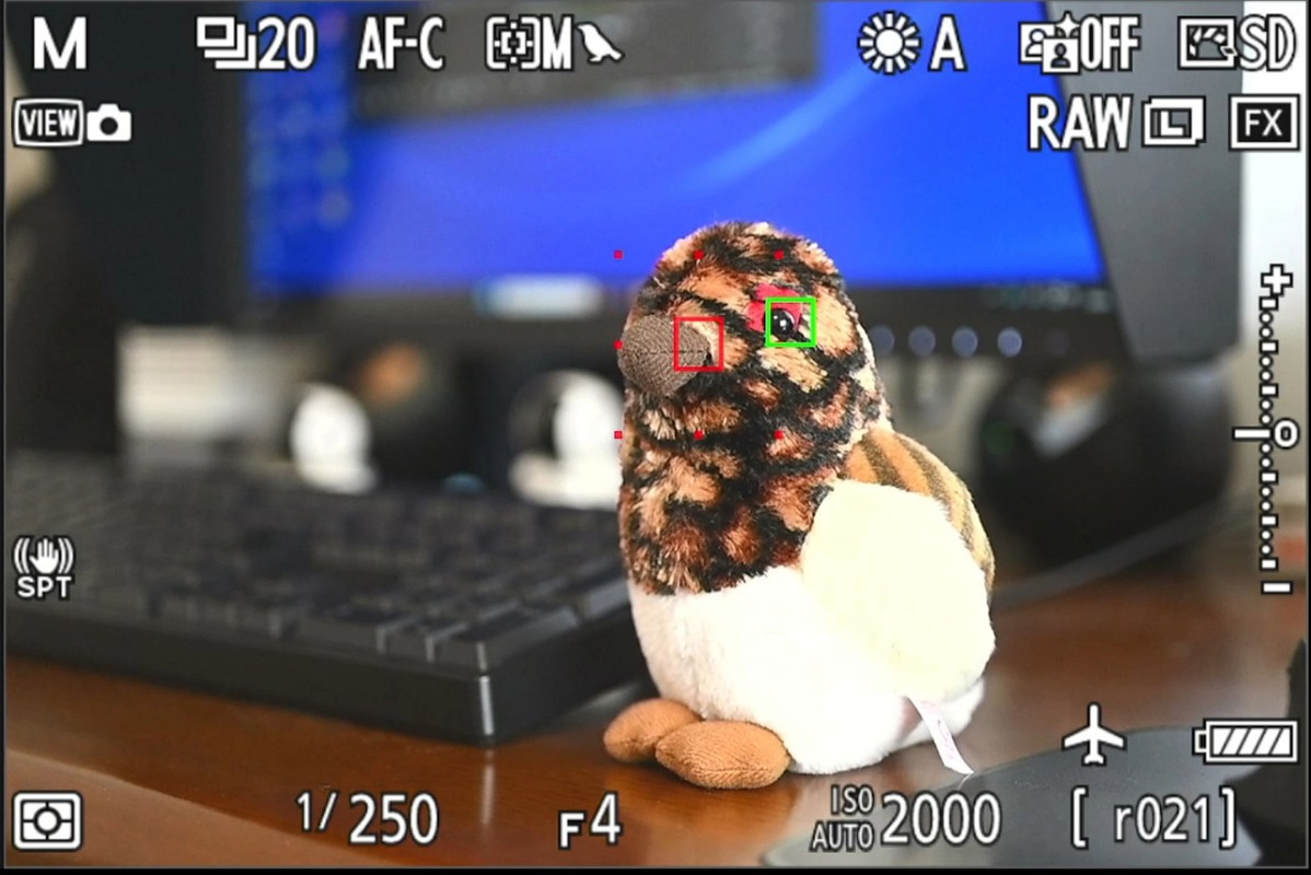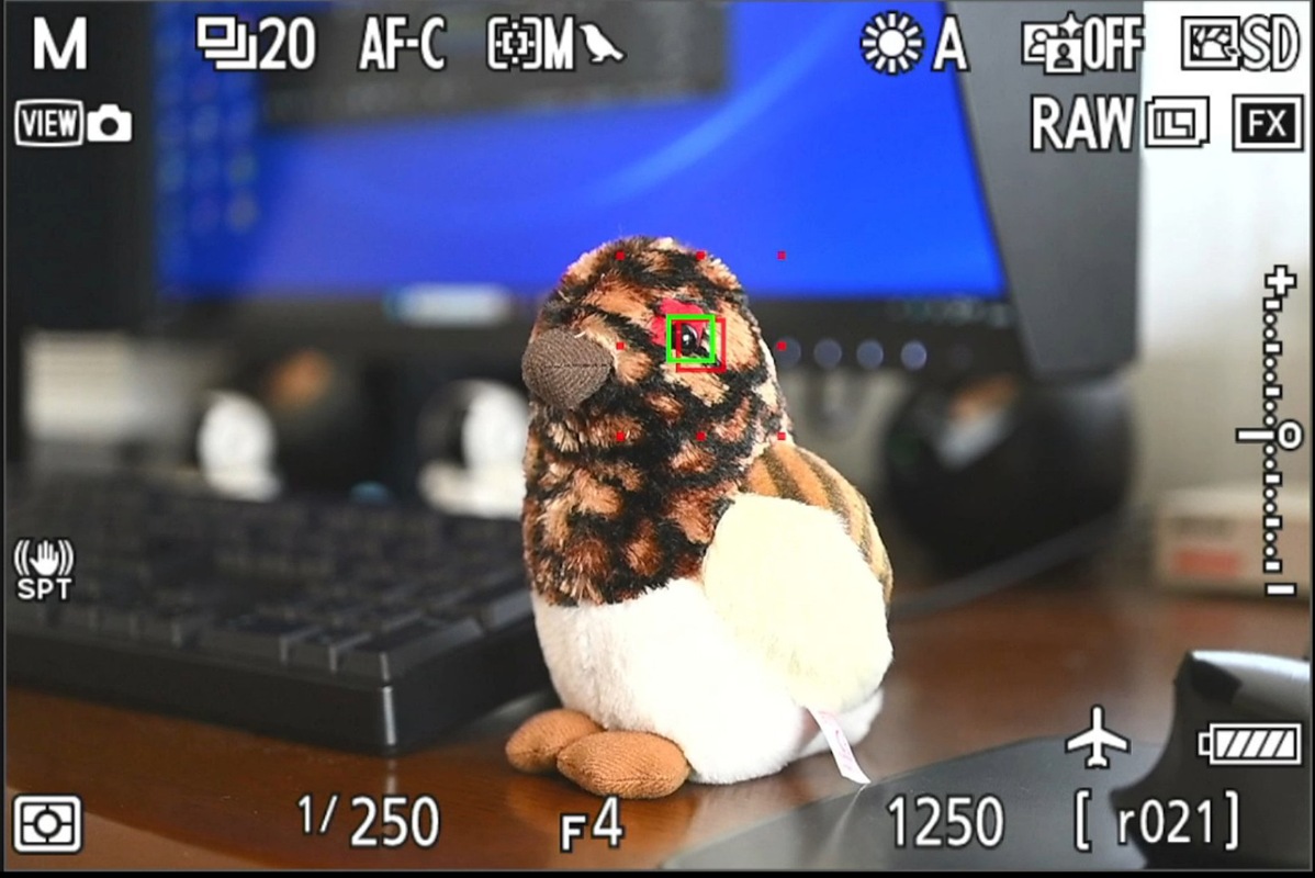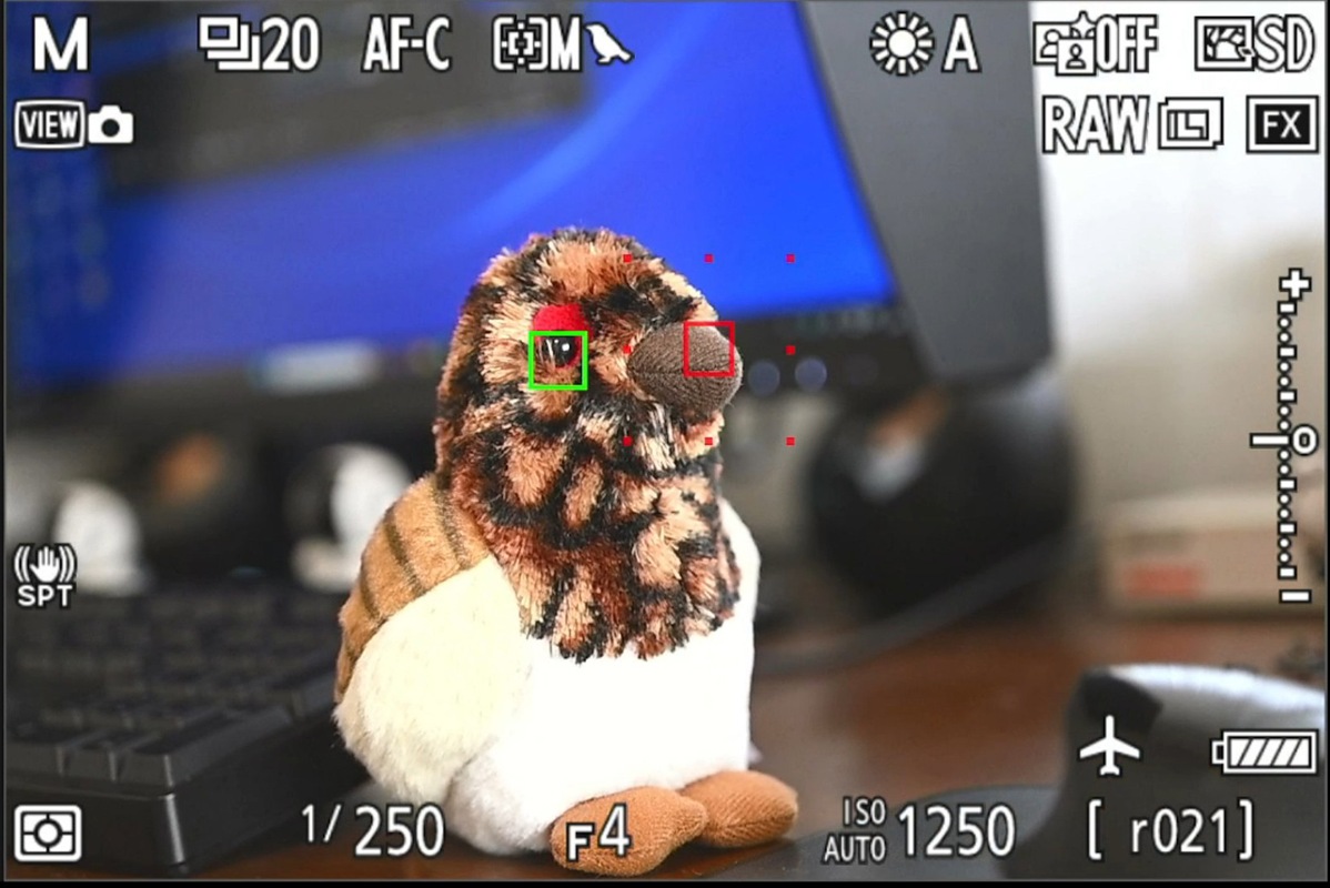 写真3 ダイナミックAF(M) で被写体検出して瞳検知の状態、センターから瞳を外してる![]()