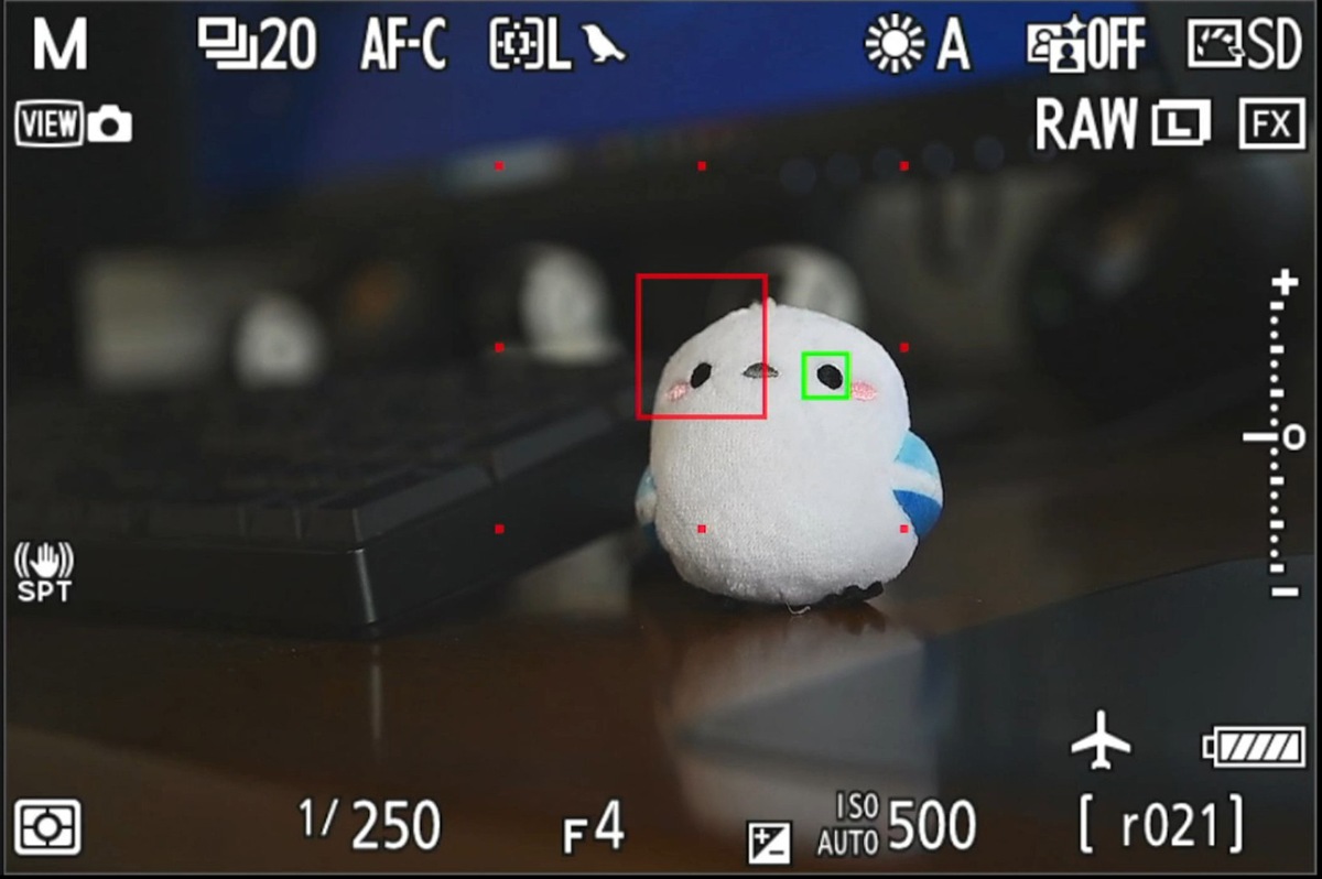 写真2 ダイナミックAF(M) で被写体検出して瞳検知の状態、センターを外して検出![]()