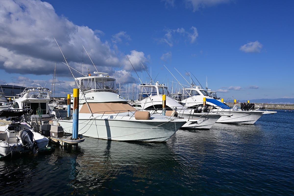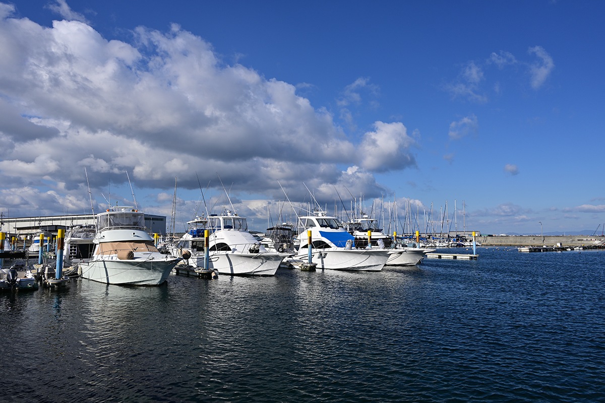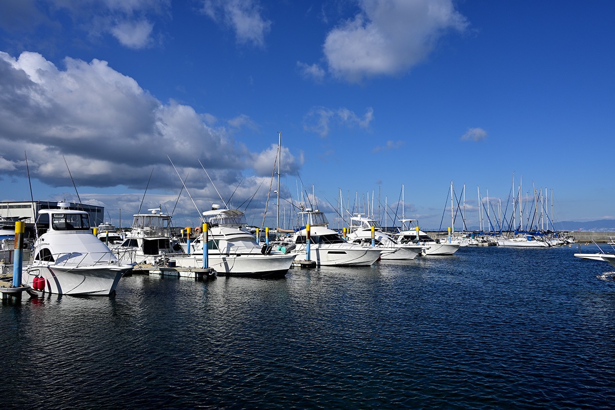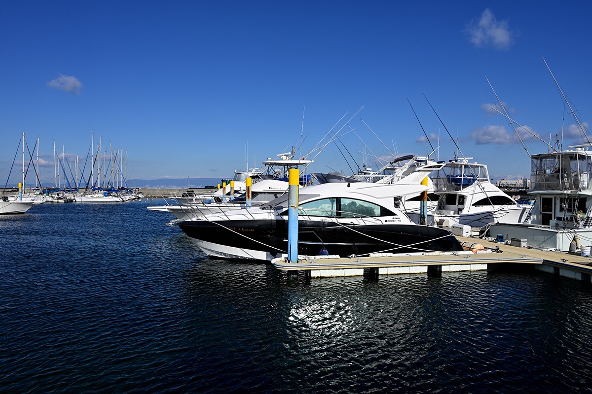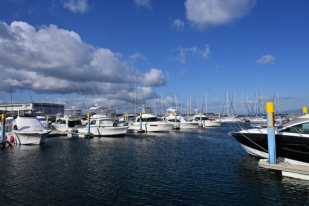 青空バックに水面の色合いと各種のクルーザ良いですね。映えます。