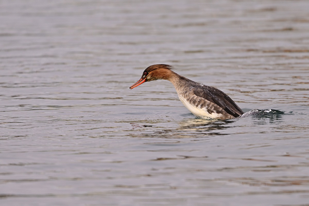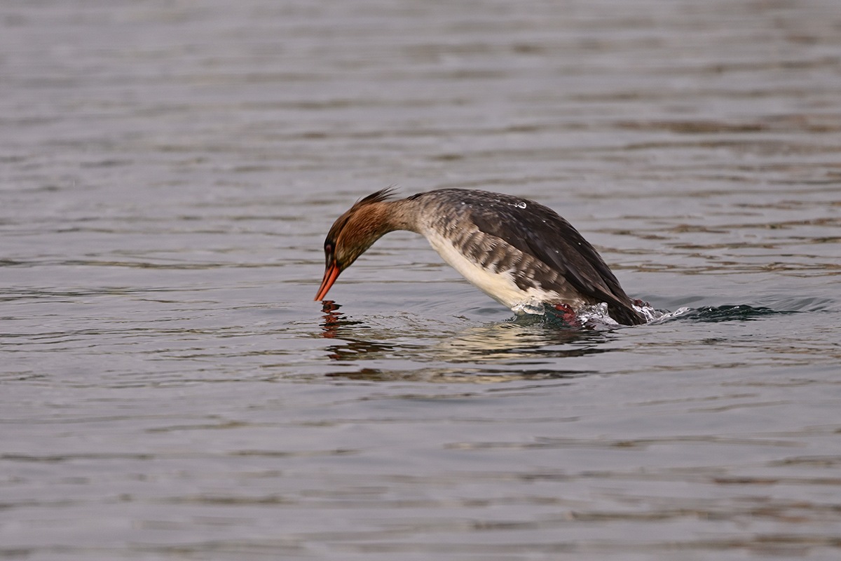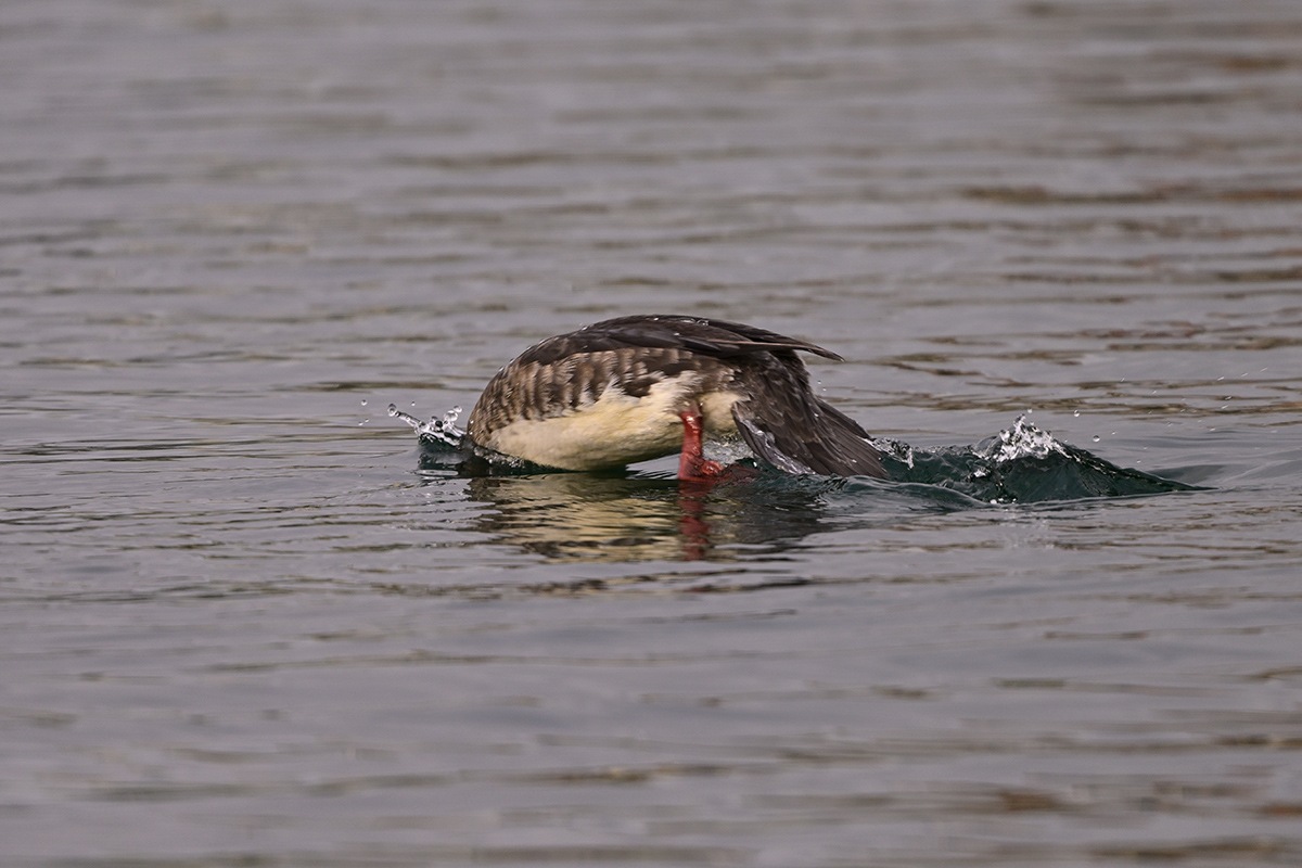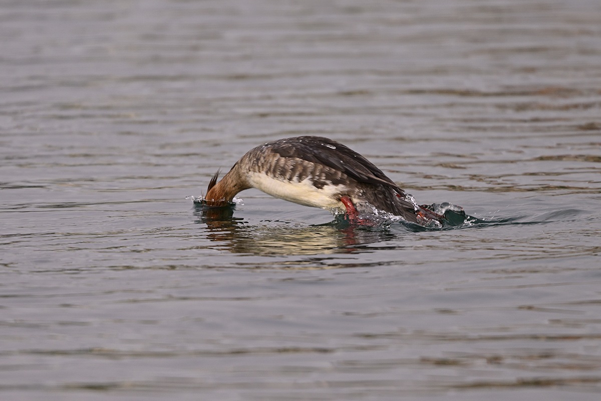 水泳のスタートとターンで入水場面が出て来ます、ウミアイサの入水の様に華麗にと思ってはいるのですが加齢でしょうか、中々うまい具合には行きません。本日はウミアイサの華麗な入水見せてくれました。