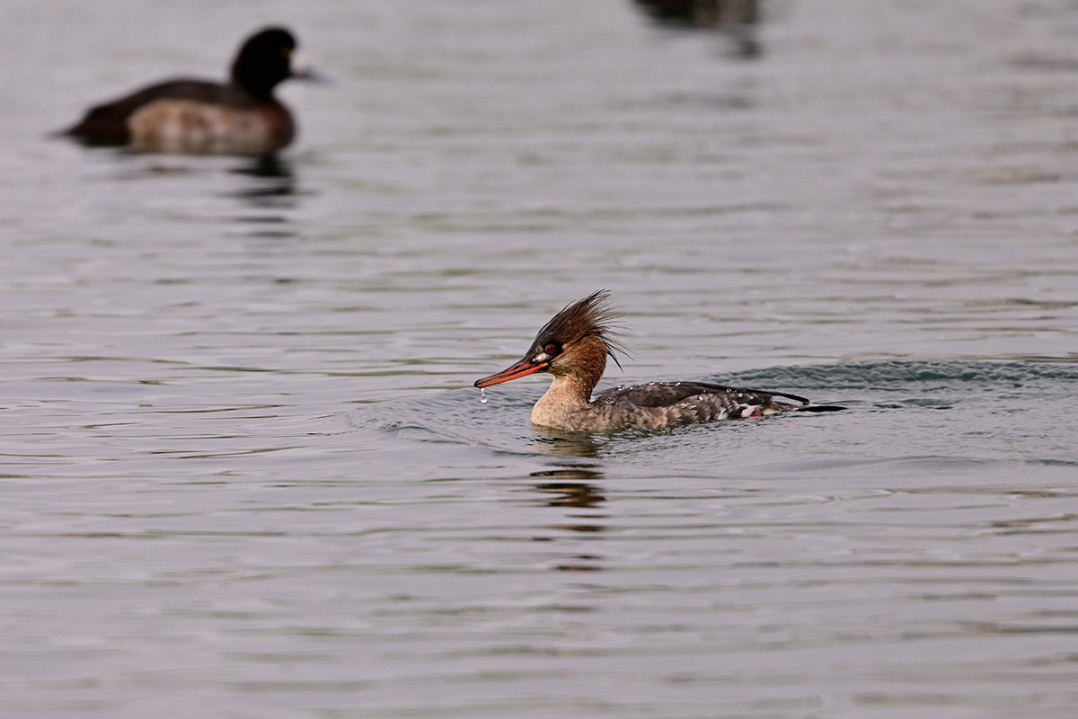 被写体はスズガモの大きな群れとウミアイサの雌が来てくれました。