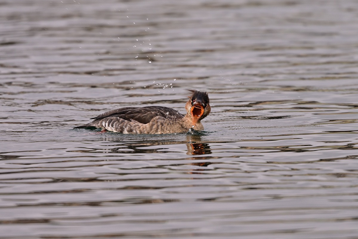写真9 ウミアイサ 多分ペリット(消化出来ない骨等)を吐き出そうとしてたのでしょうね