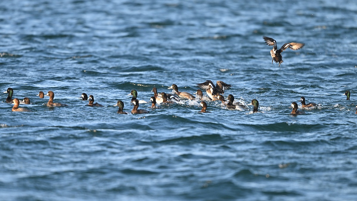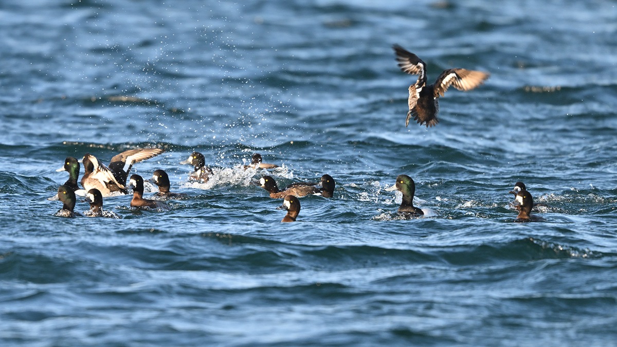 寒波襲来で西風が吹く中うねる波間を泳ぎ回るスズガモ、自然界の中で生き抜くのは厳しいですね。そんな様子を動画に纏めてUpしました。こちらからも参照出来る様に投稿させて頂きます。