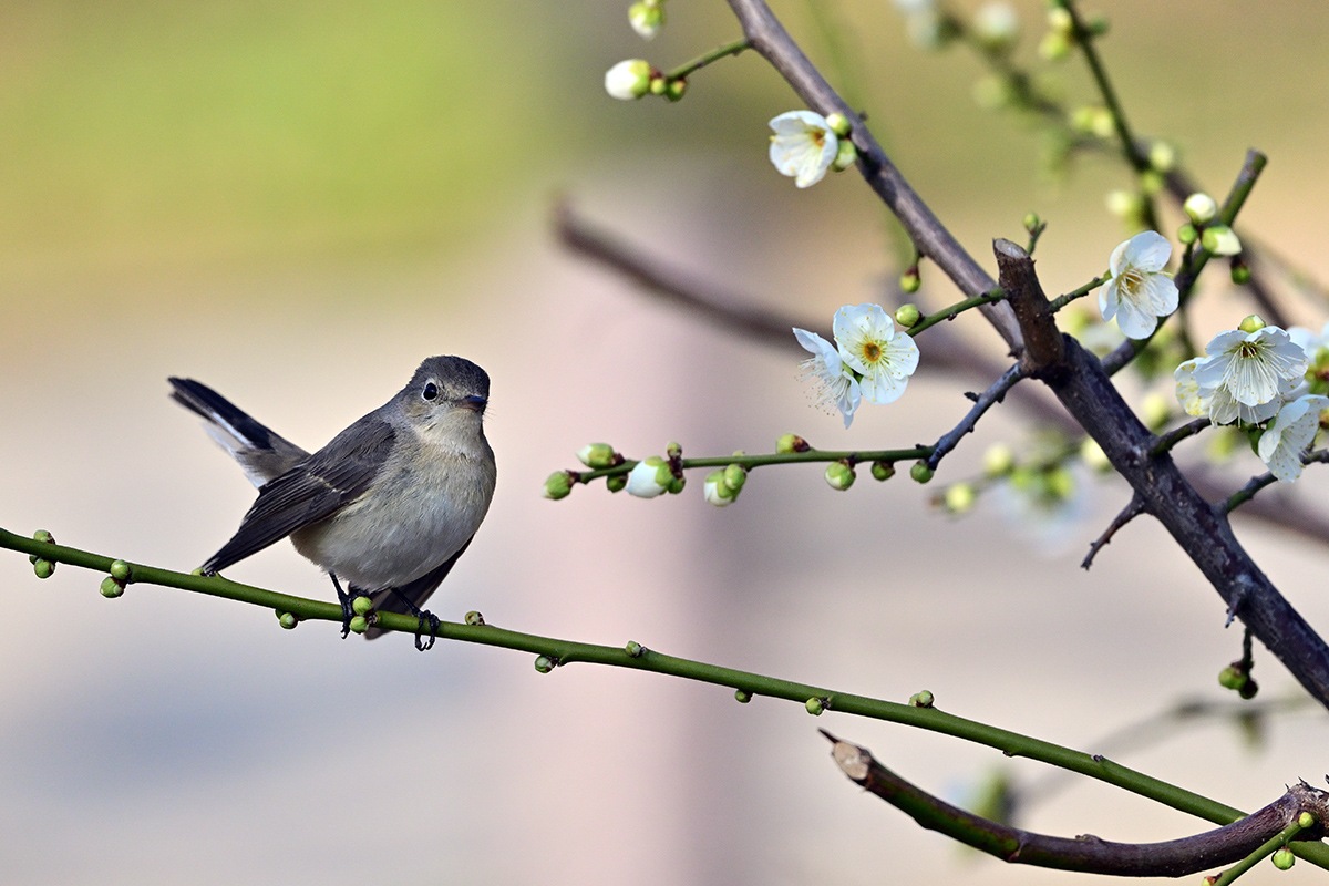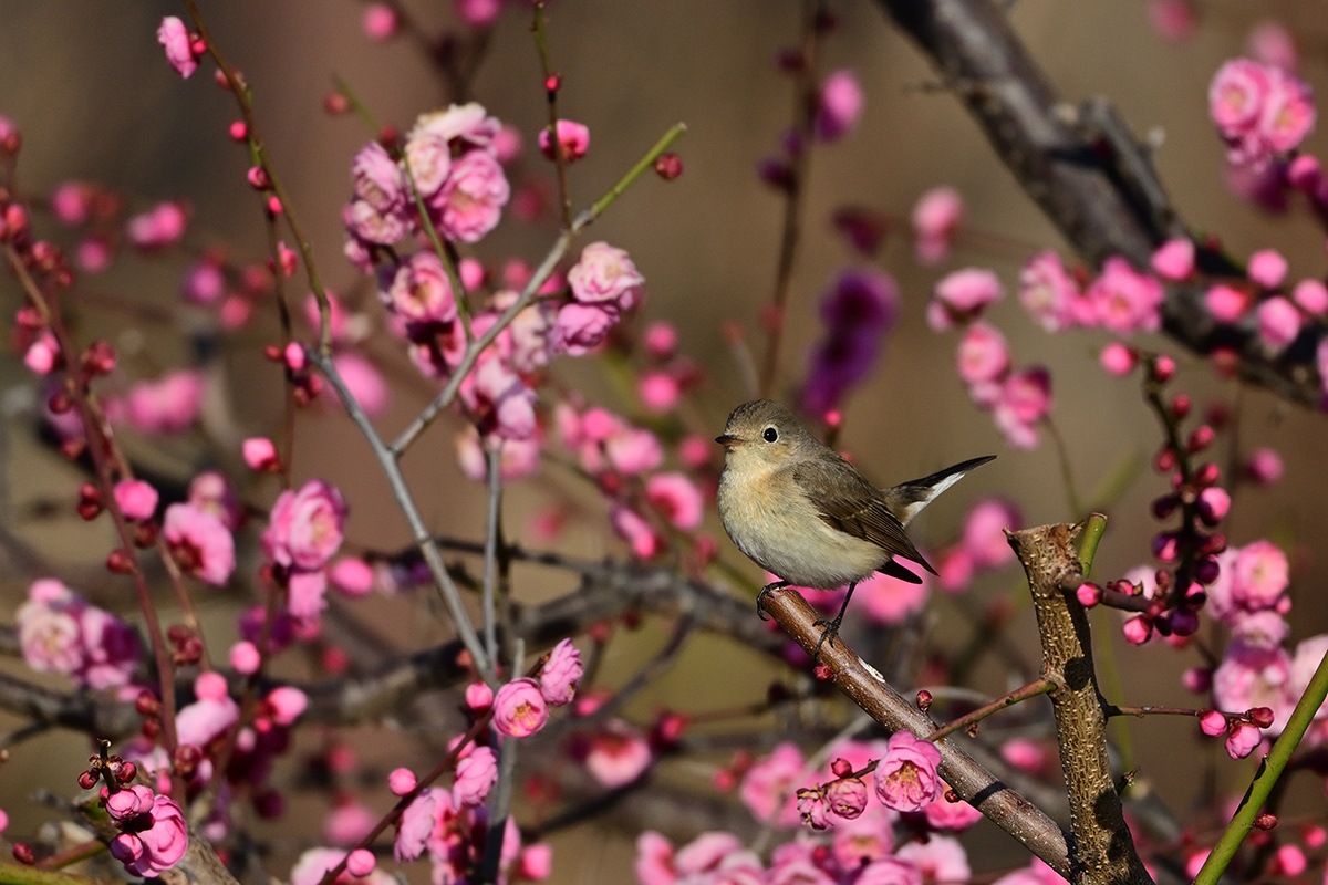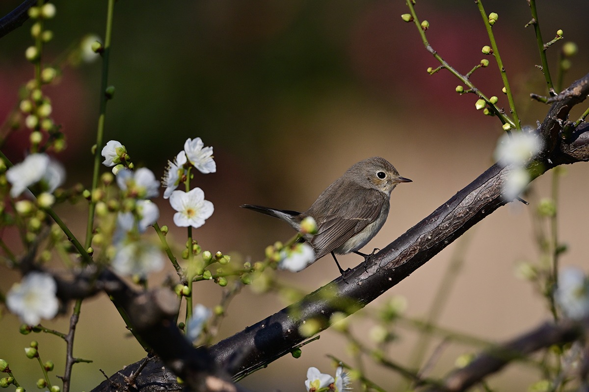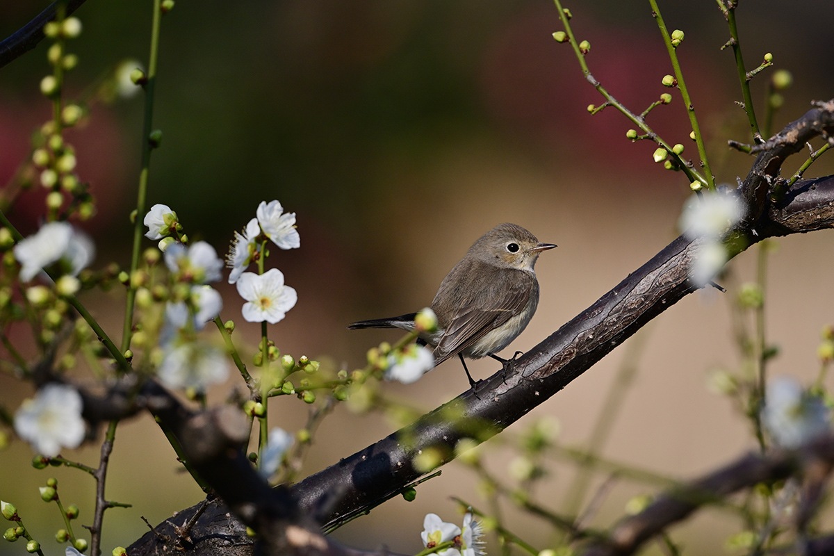 春の雰囲気が漂う小さな梅園にニシオジロビタキが時折姿を見せてくれます。