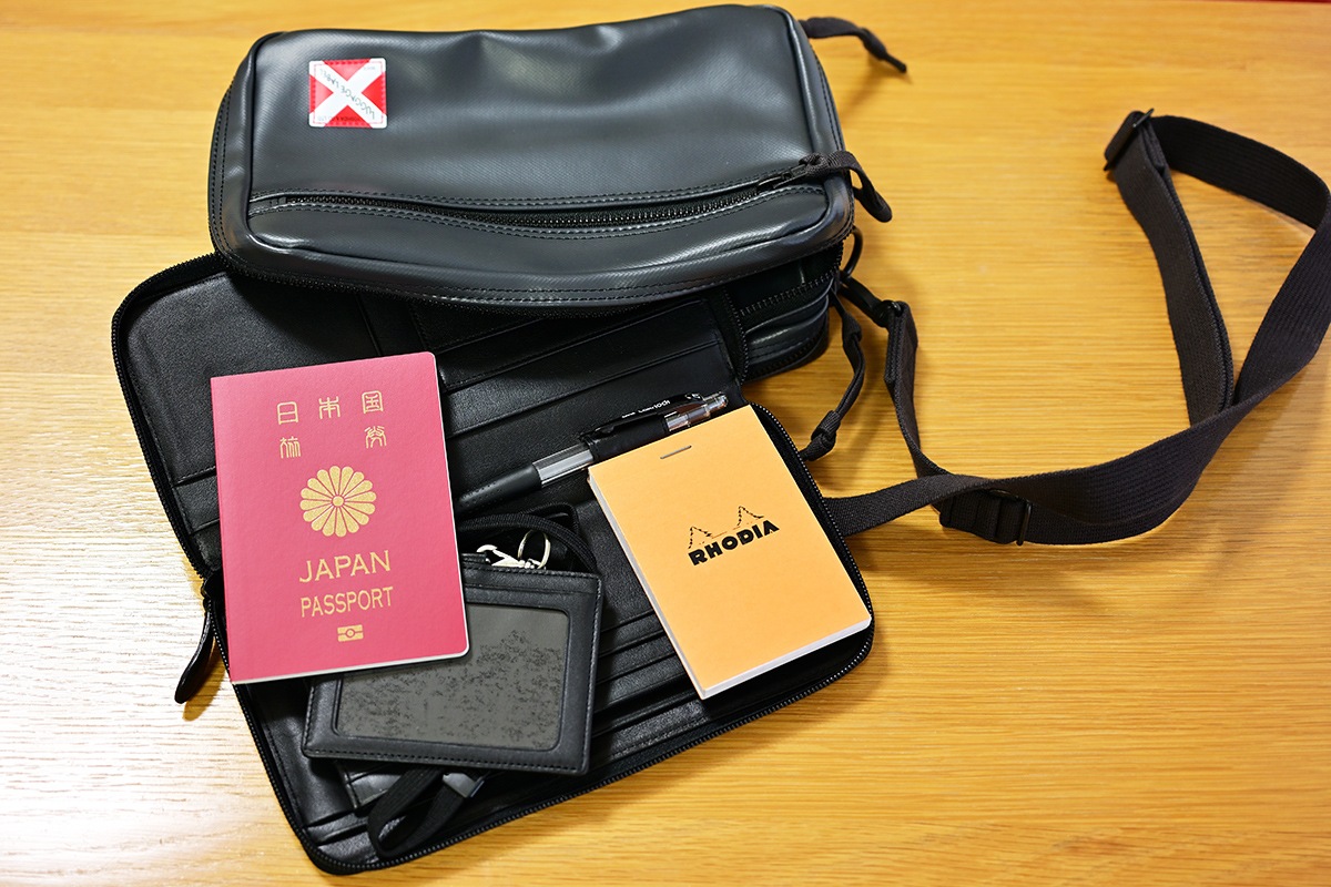 このカバンを海外に行く時に良く使用してた訳はパスポートとお財布などを入れるケースがピッタリ入るのですね。この辺りもセットになってたので更に愛着があるカバンでした。