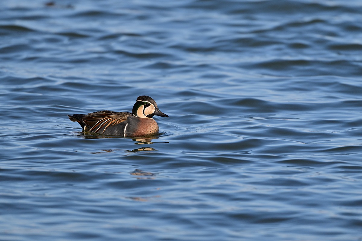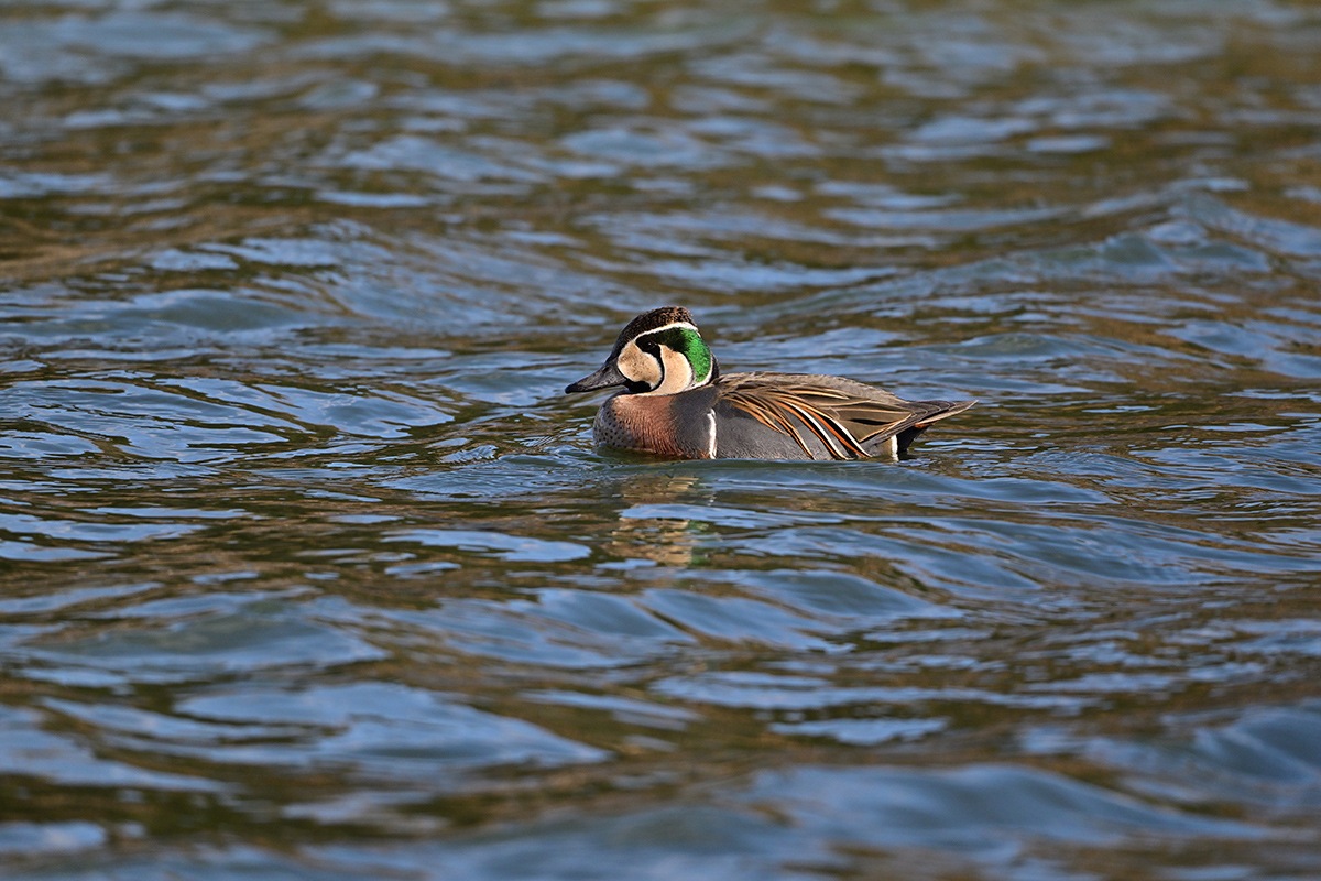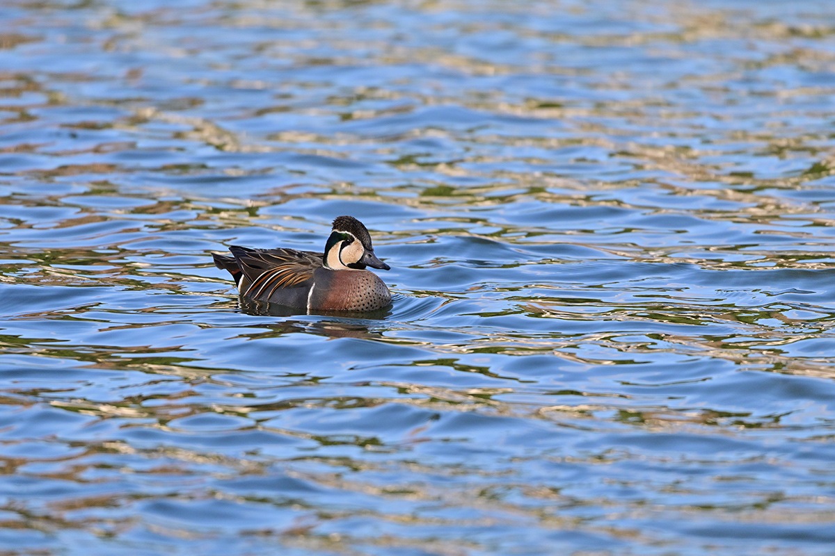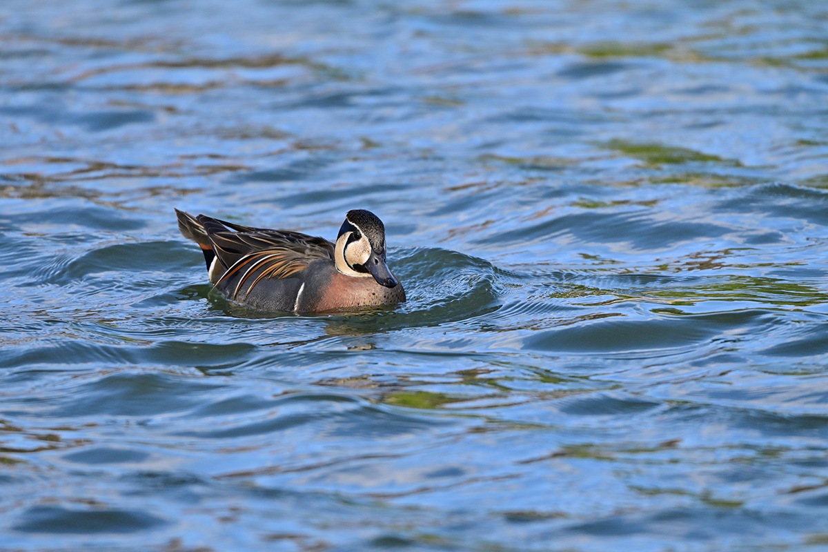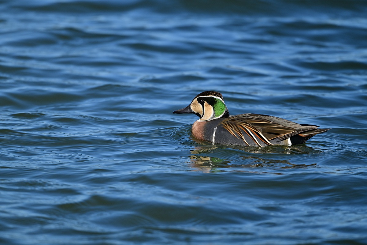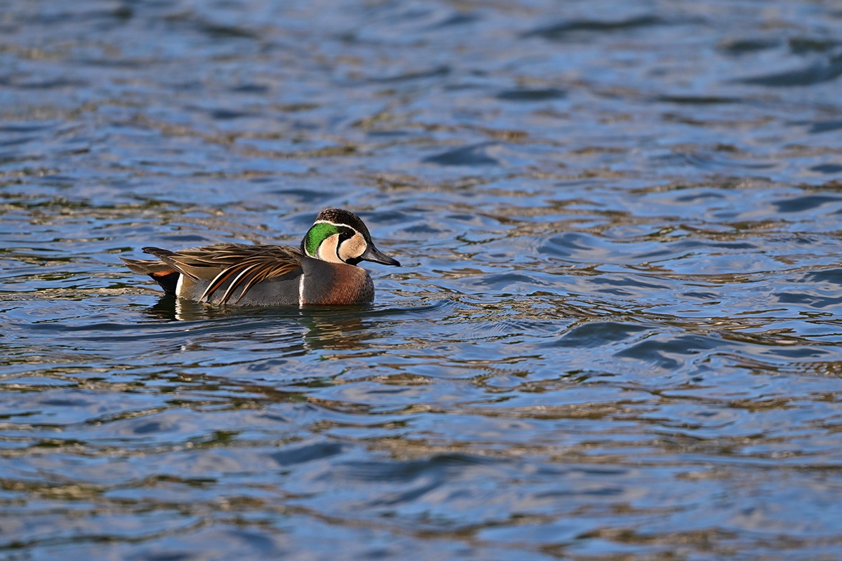 毎年の様に蜻蛉池公園の大池にお顔に巴の様な模様があるトモエガモが越冬に飛来してきます。