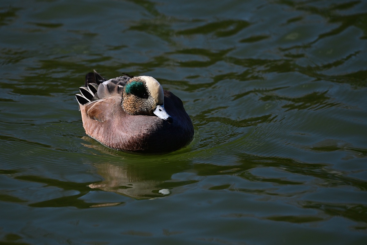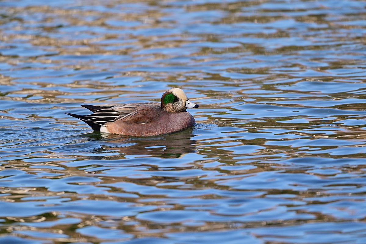 蜻蛉池公園には毎年の様にアメリカヒドリガモの交雑種が越冬してます。