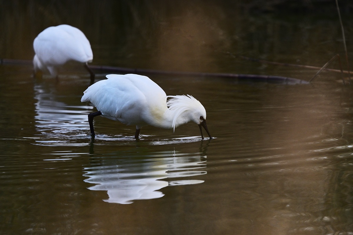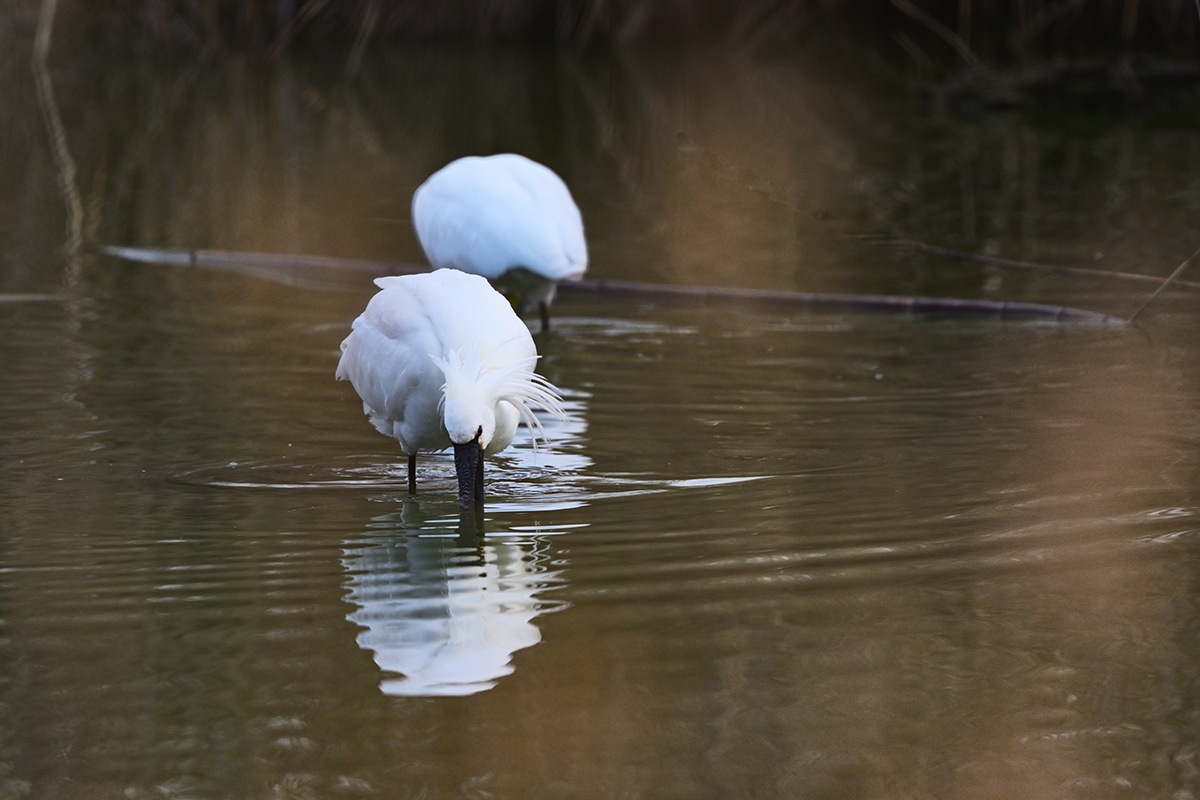 すっかり夏羽に衣替えのヘラサギ、特に一羽は冠羽が綺麗に伸びて朱鷺の様です、流石朱鷺科ですね。