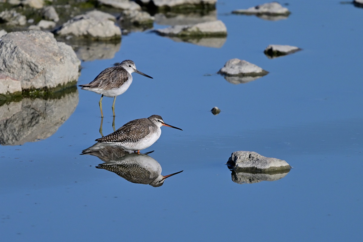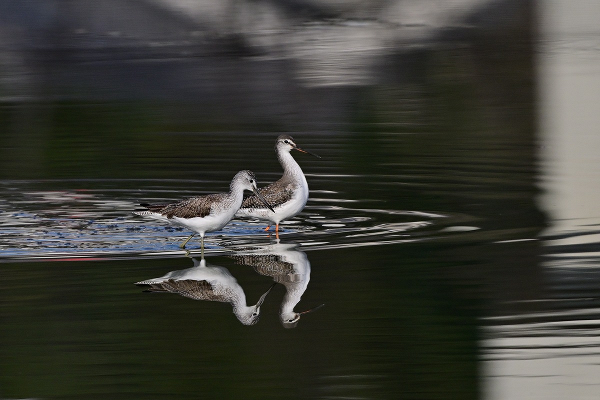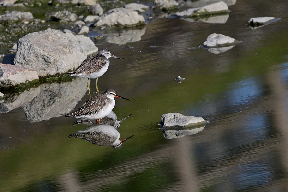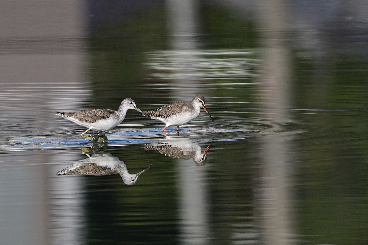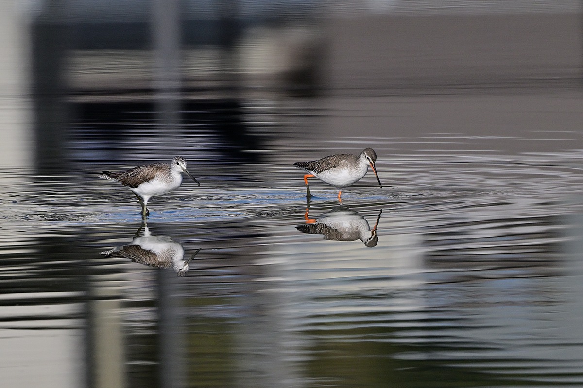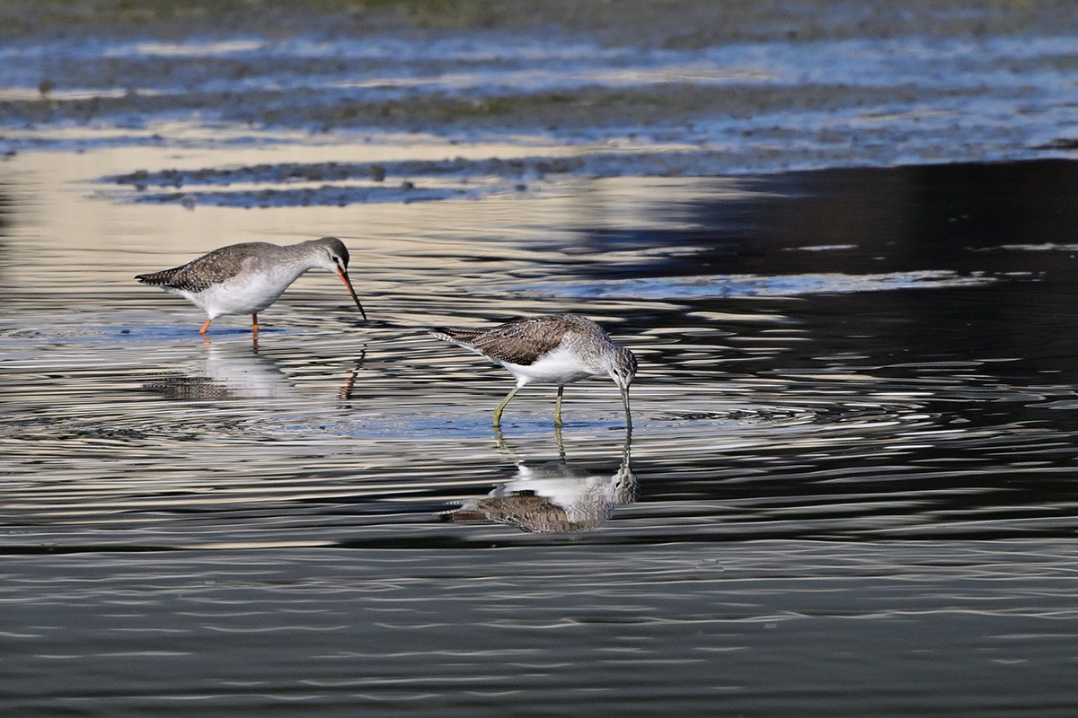 ツルシギと、アオアシシギ2羽で仲良くお食事中でした。