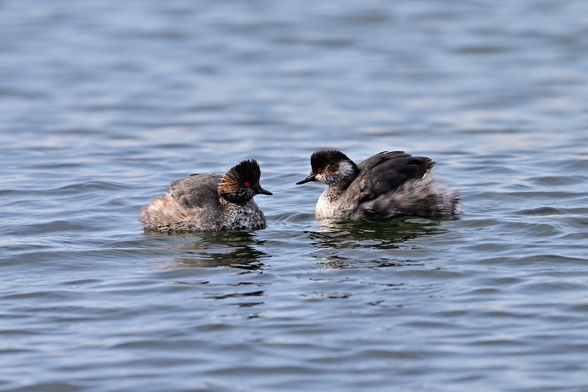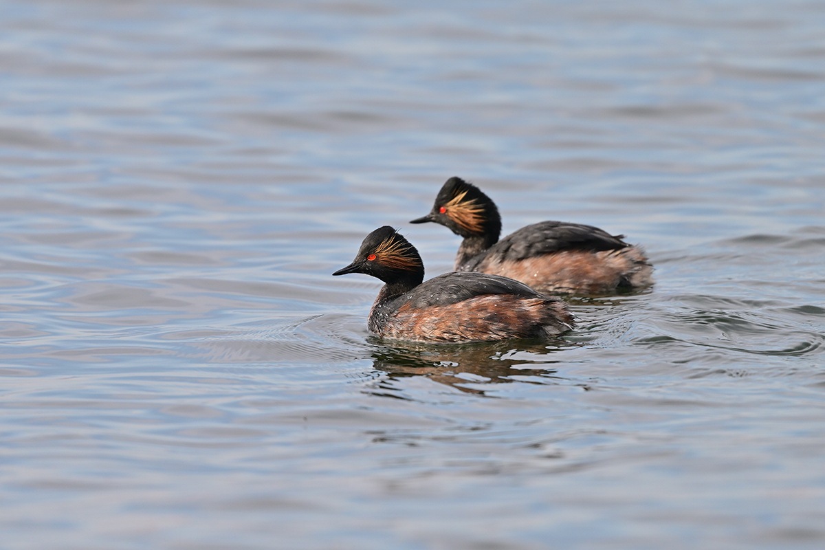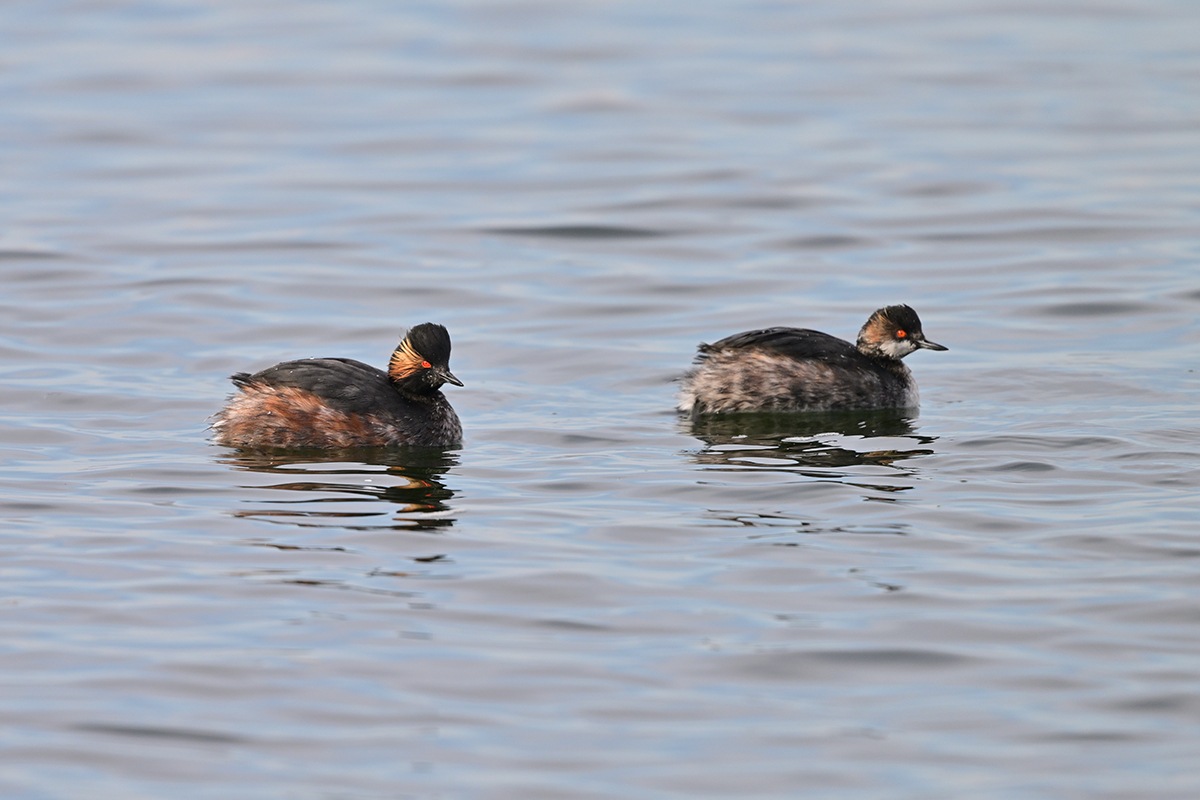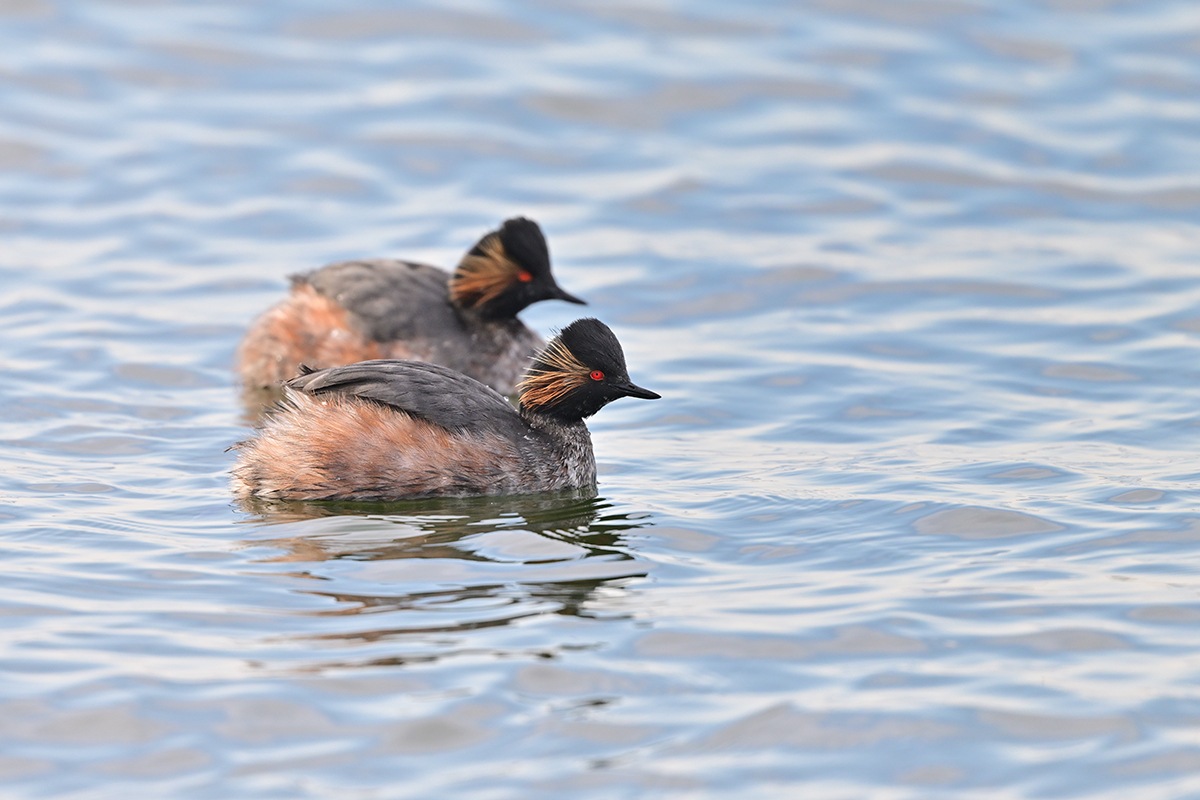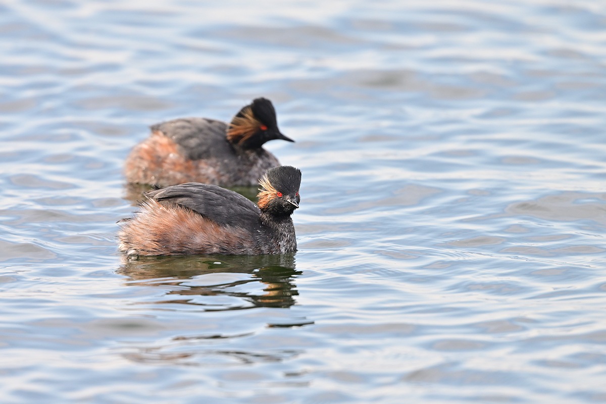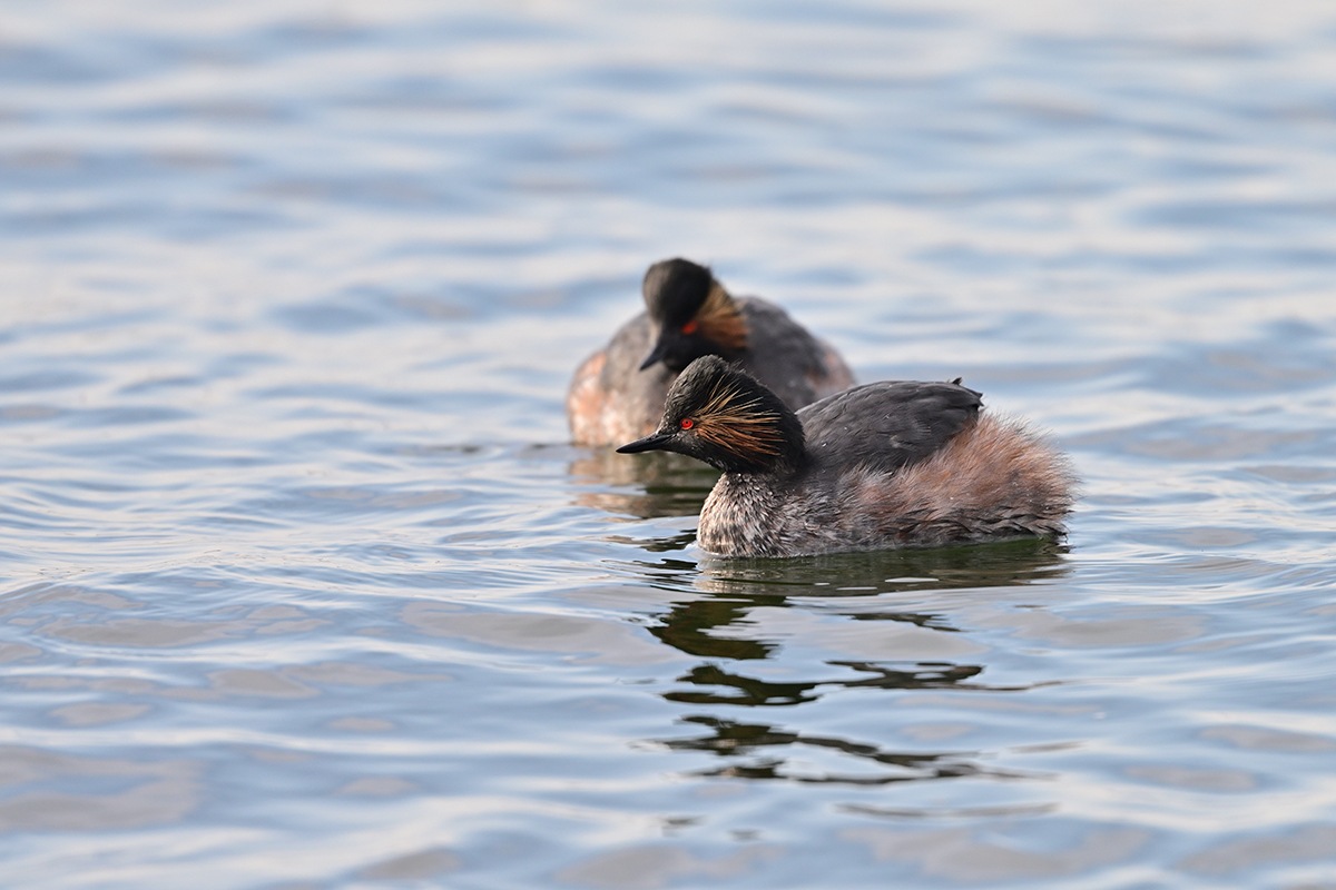 頬の飾り羽が何とも素敵なハジロカイツブリ良いですね。なかなか7羽揃って撮るのは難しそうですが何とか夏羽の2羽並びは上手い具合に撮れました。