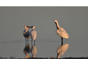 朝目覚めて東の空を確認すると雲がかからずとても奇麗な朝焼けです。それではと急いで準備して出かけて来ました。到着すると既にヘラサギ6羽が餌を採取中、クロツラが居ないなーと思ってると何時も寝てる場所から此方へ飛んで来る2羽を …