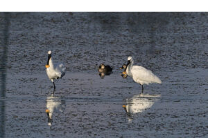 昨日の事ですが、ヘラサギが入って来たとの連絡を頂戴しましたので早速出かけて来ました。有難う御座います。2羽のヘラサギが来てました、池の中央付近でお休み中。長旅の疲れでしょうかね。その内に起きるだろうと待って居たのですが、 …