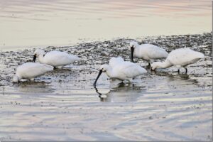 本日は気になっていたヘラサギの様子を見に早朝出かけて来ました。現地へ到着して車を駐車してるとサギの様な野鳥が数羽で飛ぶ姿を確認、急いで準備して見に出るとヘラサギ6羽が岸近くに飛来して採食中でした。ラッキー今期はほとんど近 …